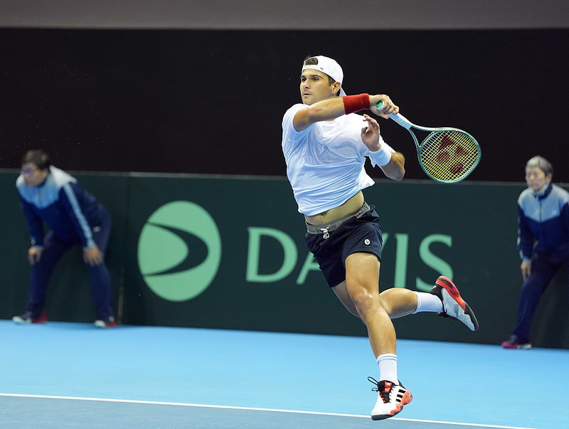 2025台維斯盃國際男子網球團體錦標賽世界組總決賽升降附加賽今天在臺北市網球中心開打,第1點單打世界第119臺灣一哥曾俊欣以2比6、2比6不敵世界第43的Marcos Giron,無緣在特地到現場打氣楊勇緯、王冠閎面前取勝,中華以0比1落後於美國。