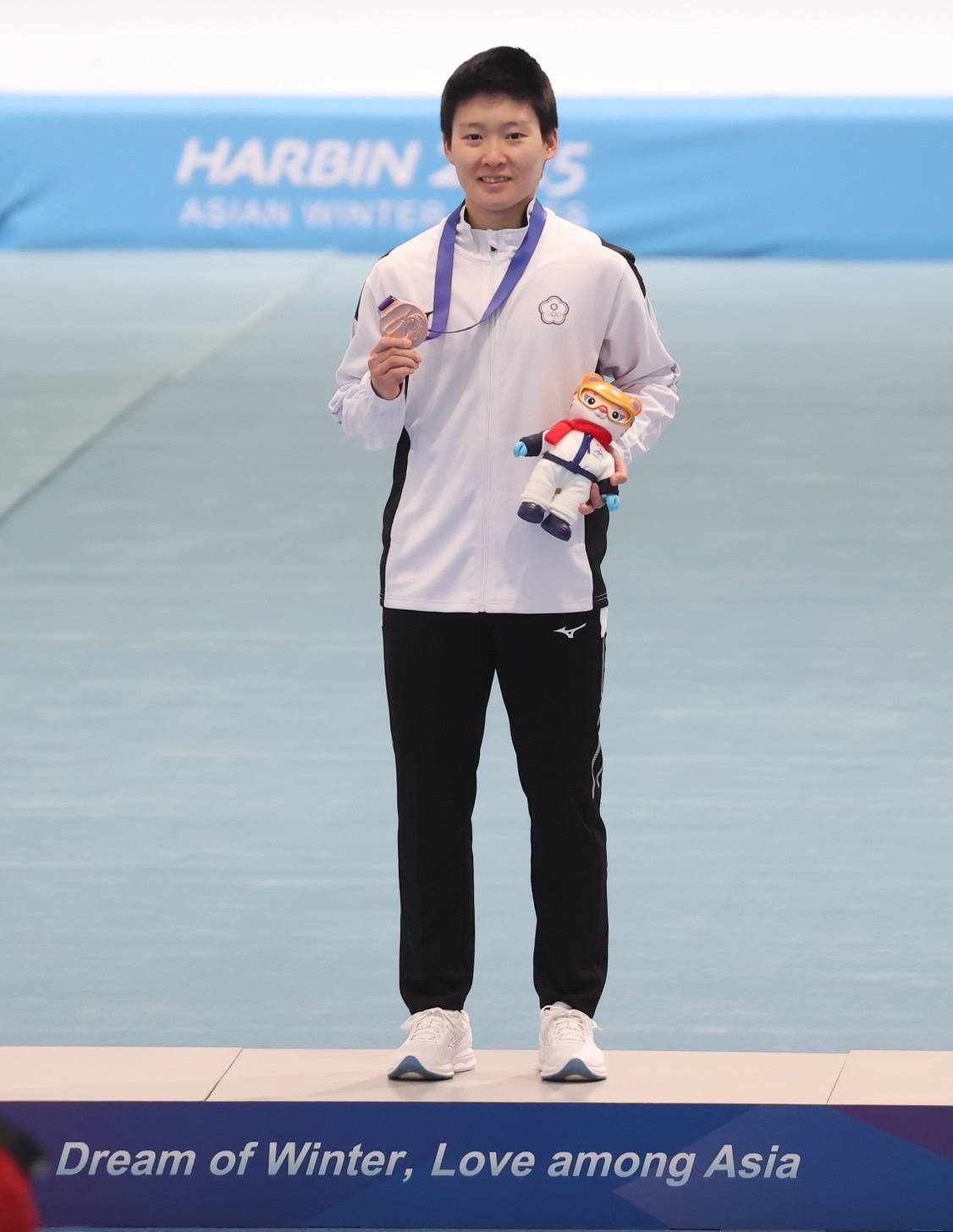 陳映竹今天在哈爾濱亞洲冬季運動會,競速滑冰女子100公尺以10秒51奪銅。(中華奧會提供)