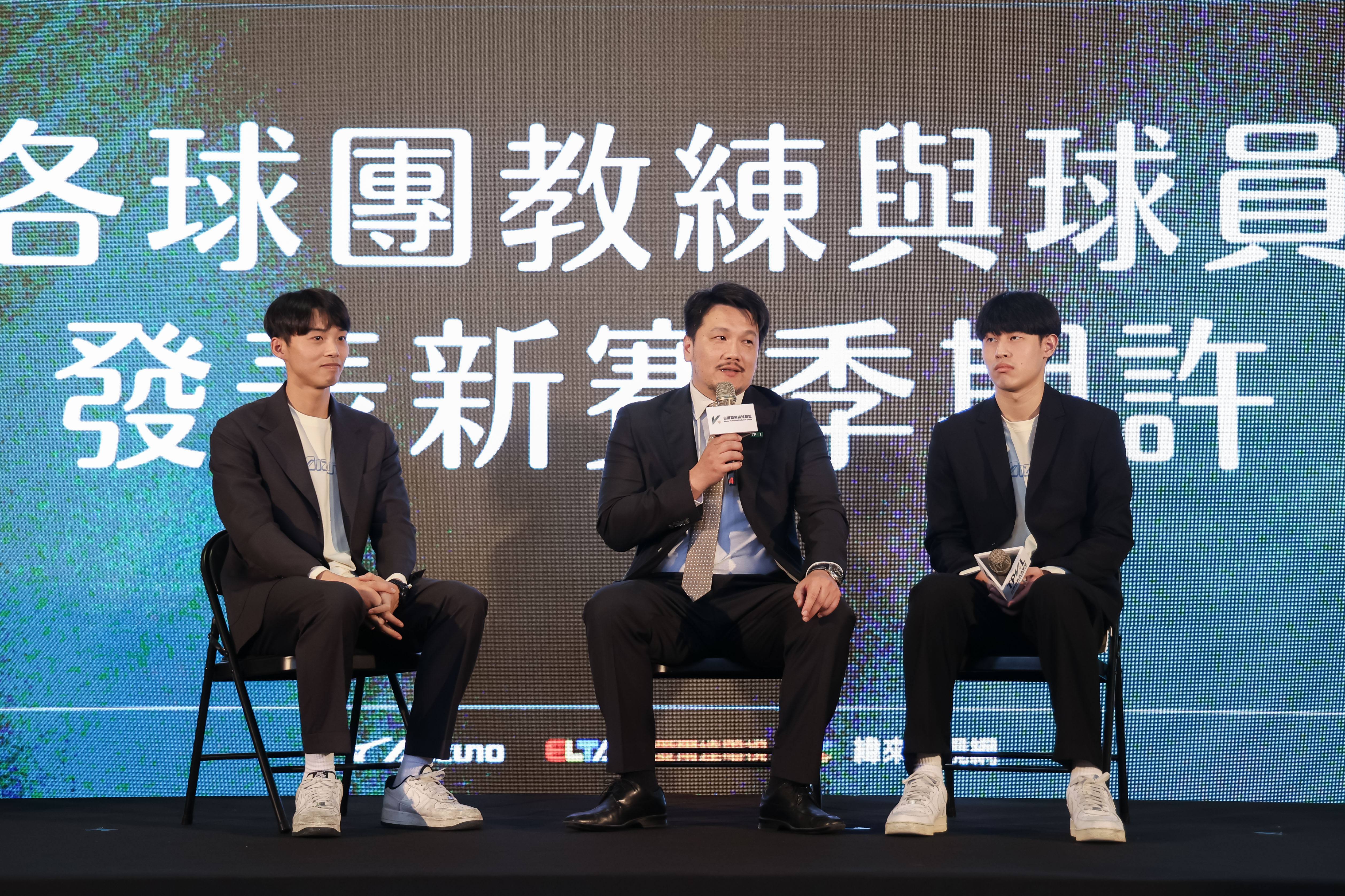 伊斯特動力男排總教練李國源(中)與球員高偉誠(左)、劉少宇(右)。(TPVL提供)