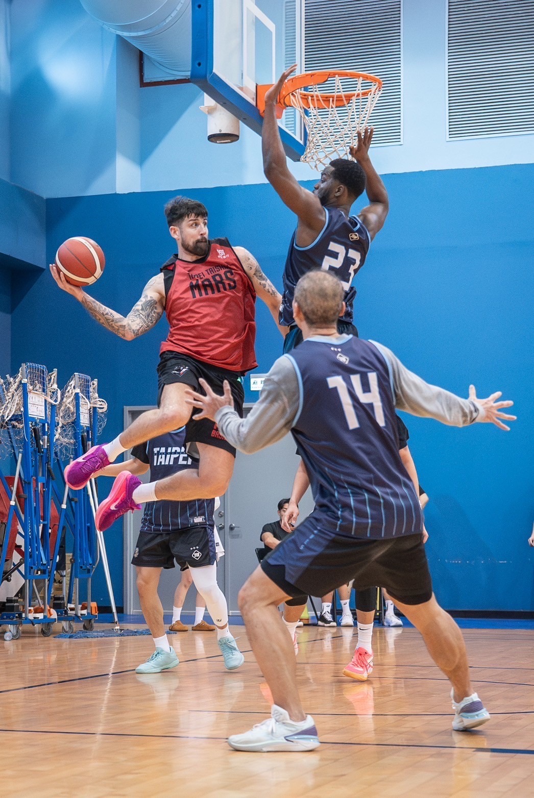 台新戰神於近兩週休兵期間透過友誼賽維持比賽節奏,莫爾曼在練習賽中單場七顆三分球演出,展現外線火力。(台新戰神提供)