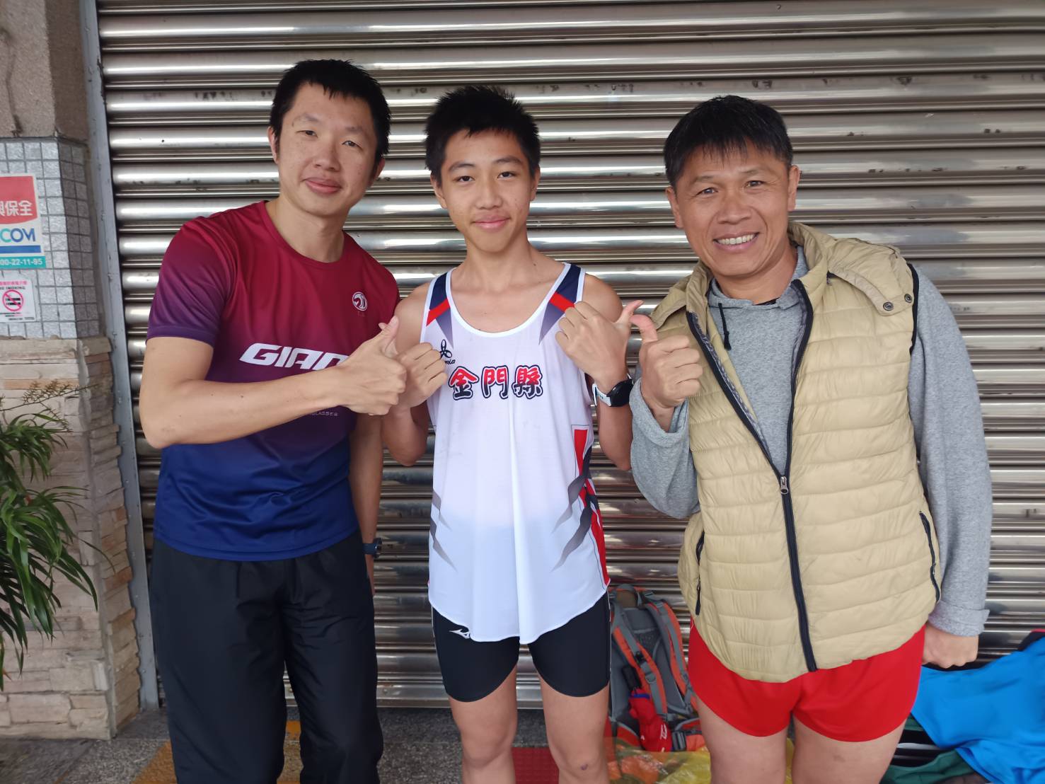 金門16歲小將卓佳賞(中)封王,老爸卓正弘(右)和第二名楊晁青。(中華民國定向越野協會提供)