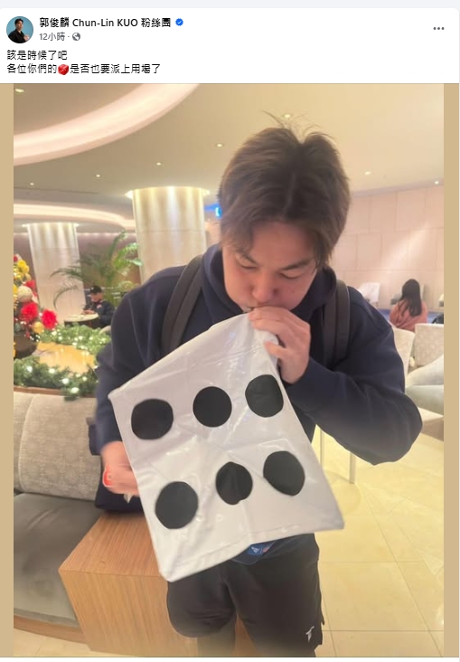 中華隊在前3戰的表現不是很理想,12強投手郭俊麟拿出12強時球迷送的「666」骰子吹氣,寫著,「該是時候了吧!各位你們的骰子🎲是否也要派上用場了。」