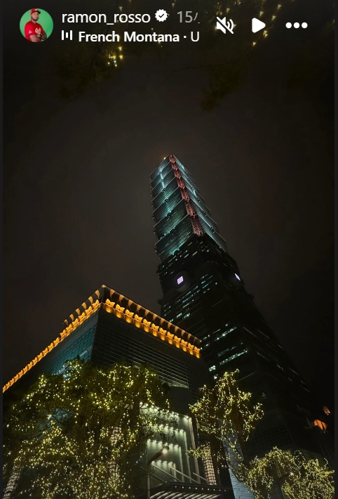 Ramon Rosso在IG限時動態發文,他在101的樓上拍照,還是隊友晚上一起逛街看夜景,把照片上傳到社群平台,在大戰之前的一天,看來十分輕鬆。