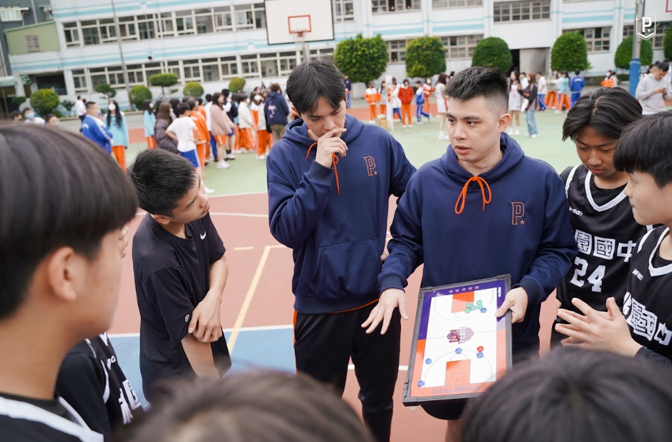 在東超賽事肩負情蒐重任的助理教練柯煥為,親自下場畫戰術板帶領籃球社成員進行模擬戰術跑位,將更多職業賽場上實際運用的戰術傳授給小球員,讓他們學習更多籃球場下的知識。