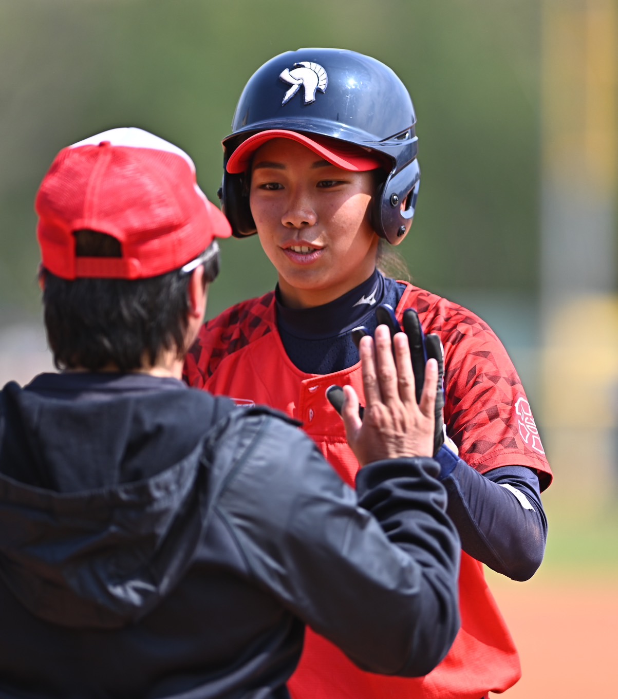 台師大開路先鋒姜婷恩表現穩定,今3打數就完成3安猛打賞,包含1支三壘安打帶一分打點,做為碩二大學姐的她,希望扮演好第一棒角色,帶動學妹參與攻擊的氣勢,「自己好也要帶動團隊攻勢跟氣勢比較重要,如果一人打好,其他人不好也不會得分,我是開路先鋒,我帶動氣氛能感染到學妹想要一安打感覺,我就扮演好第一棒角色。」