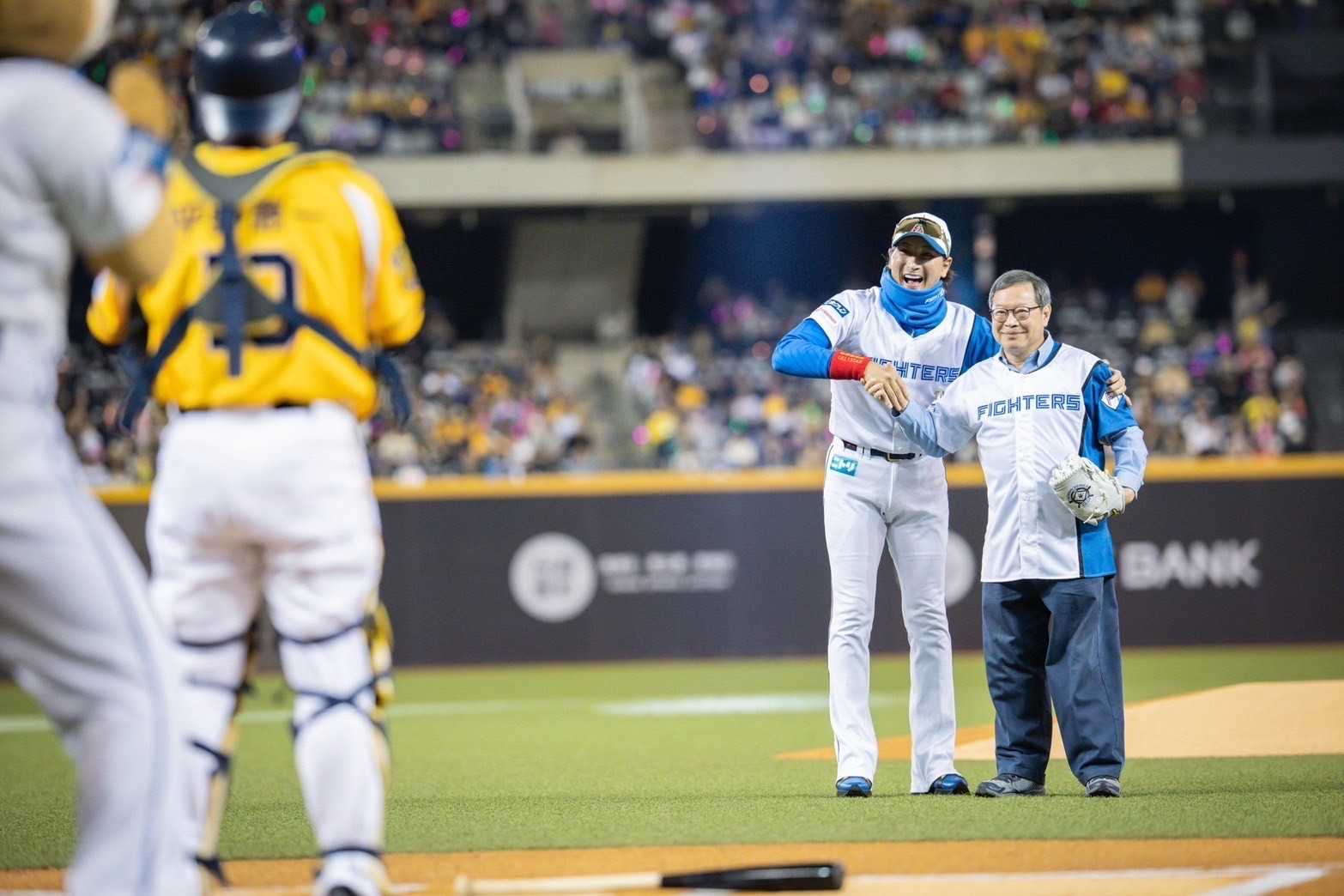 中信兄弟亦派出黃金陣容迎戰,包含萬人迷隊長王威晨、台灣大賽MVP曾頌恩、世界12強中華隊黃金二游江坤宇及岳東華。這場黃衫軍對決火腿之役,由中信銀行副董事長詹庭禎開球,中信兄弟總教練平野惠一擔任捕手,火腿隊總教練新庄剛志接招打擊,吹響交戰號角。