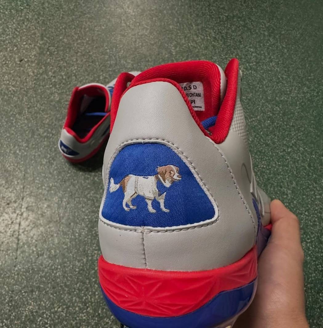 大谷翔平在今天大聯盟東京海外賽首戰比賽結束後,於IG發布了一系列照劃,其中包括他的新款釘鞋首度曝光,裏面藏有玄機,他的愛犬Decoy(彈額頭)都繡上去,在比賽時就像牠也跟著一起,日媒形容,就像兩人的團隊合作。