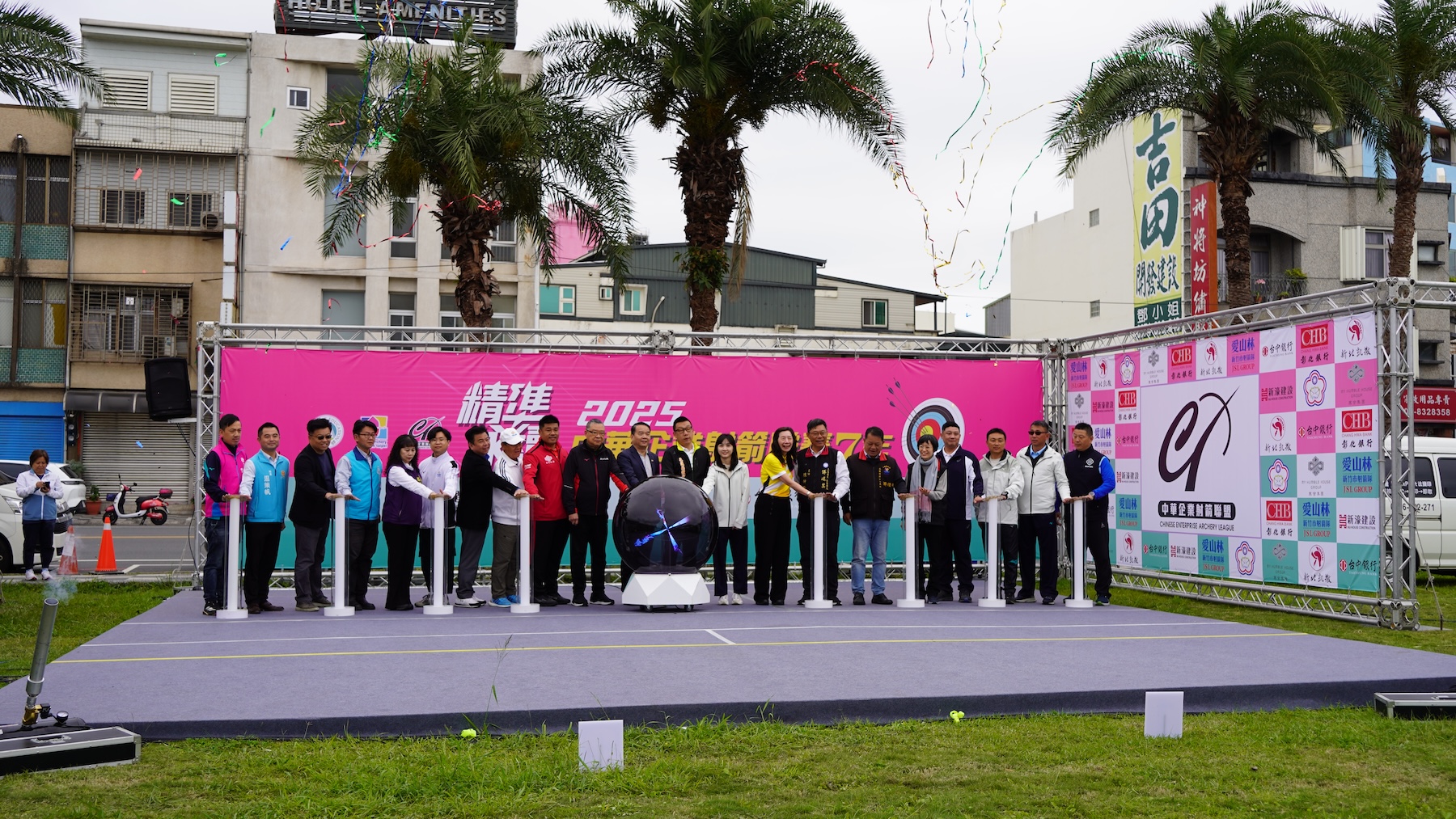 第七屆中華企業射箭聯賽今天在花蓮知名景點東大門開幕。(大會提供)