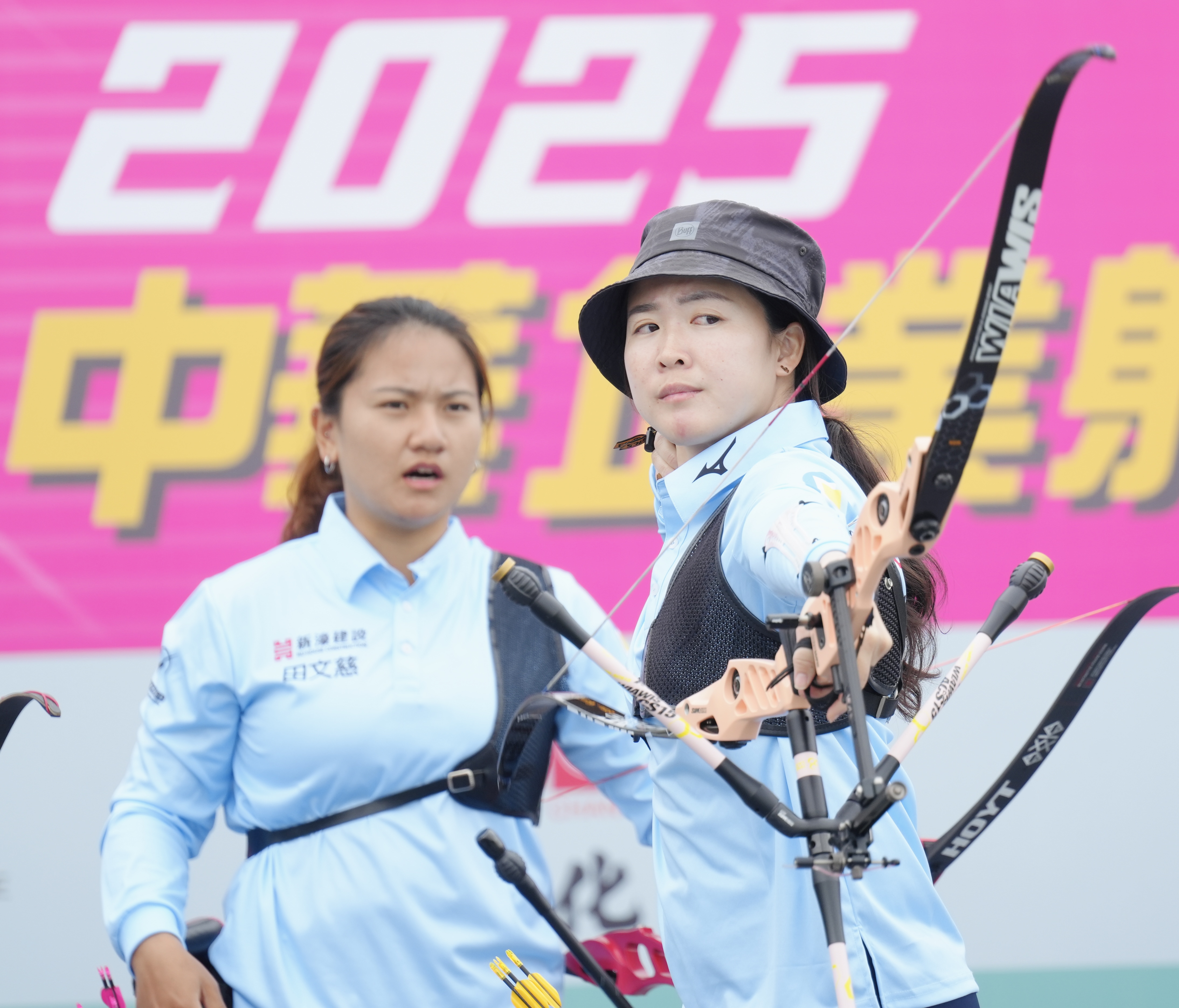 2025年第7屆中華企業射箭聯賽今日繼續在花蓮東大門夜市廣場舉行,新濠建設雖2代「箭林之后」彭家楙、風佑築合體,女單仍未開張,但今天3比2險勝協會青年2隊,勝長開張,不過教練陳能陞依然期待2人後續能成為提升戰績主力。