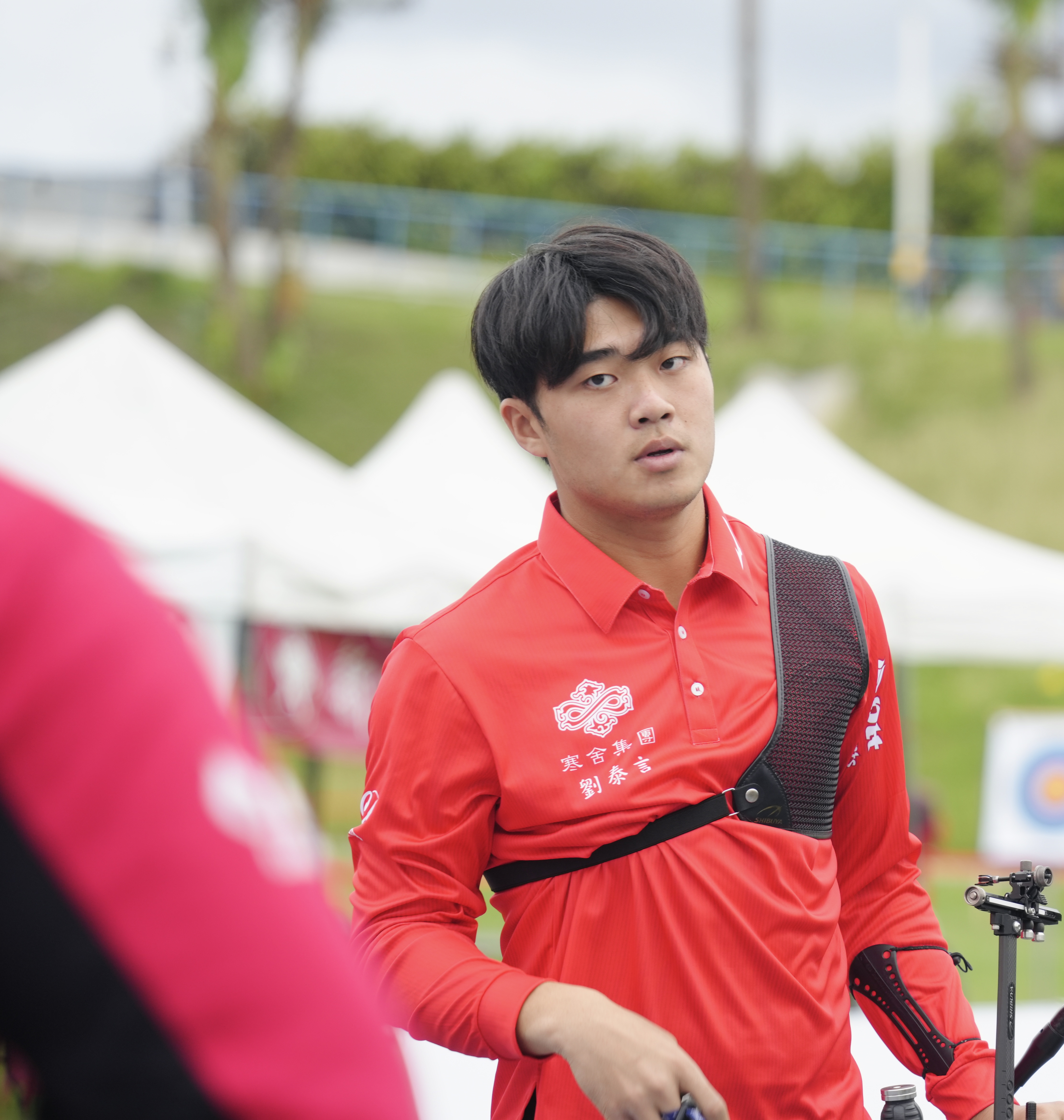 劉泰言久違企聯個人賽,加射後敗給巴黎奧運國手、國立體育大學學長林子翔。(中華民國射箭協會提供)