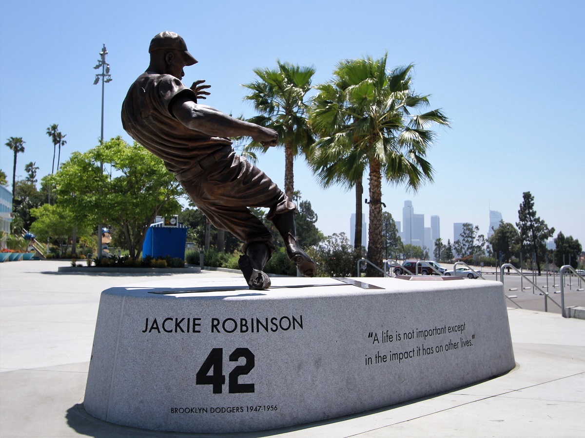 今年(2017)的傑基羅賓遜日,洛杉磯道奇隊在球場為羅賓遜的紀念銅像舉行了揭幕典禮;羅賓遜最為人著稱的就是他盜回本壘的能力,而在棒球比賽中『盜本壘』象徵著勇氣,銅像所凍結住的這一刻,剛好精準呈現了羅賓遜充滿勇氣的一生。