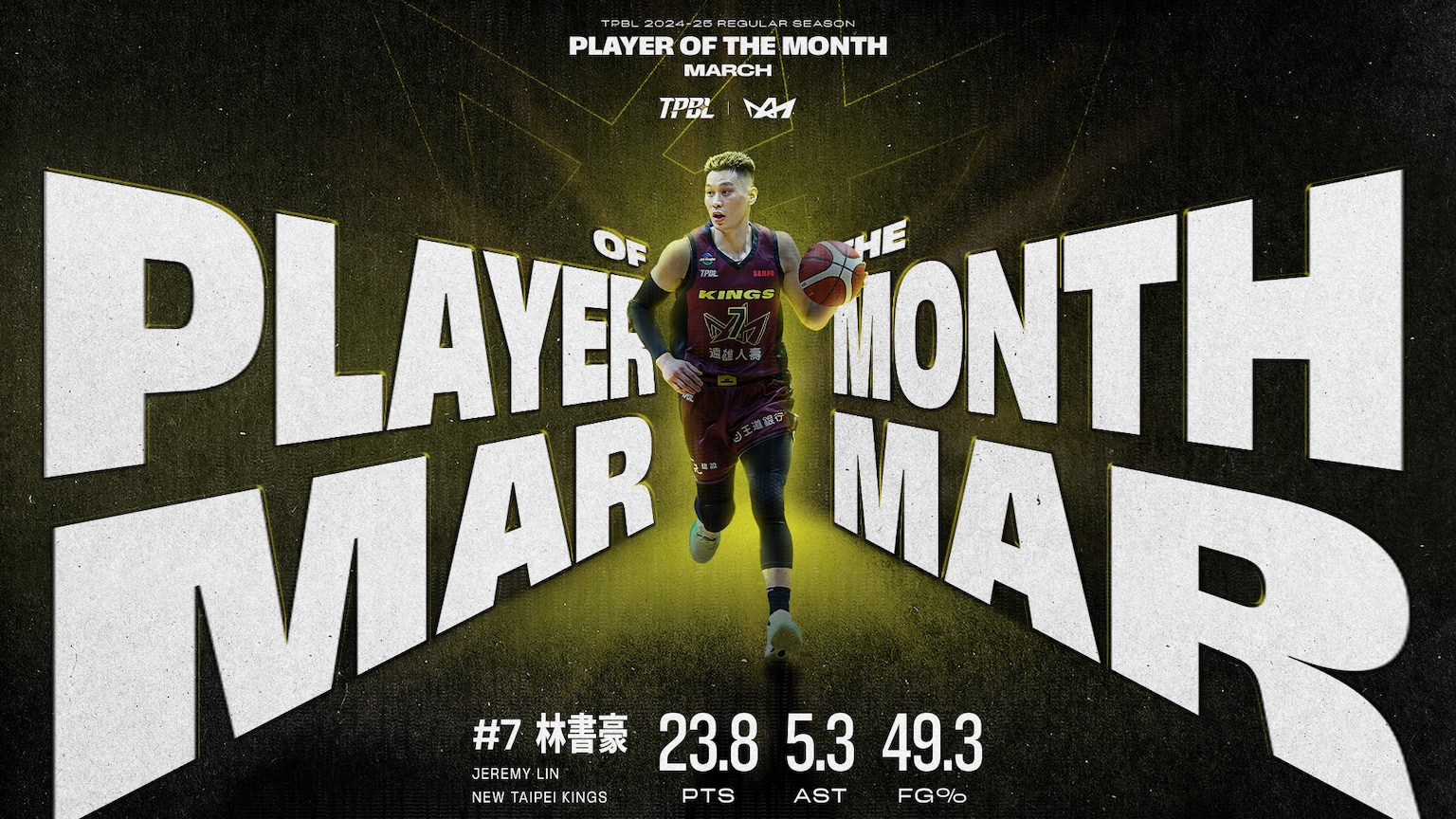 TPBL今天公布2024-25賽季3月MVP和最佳外援,由新北國王林書豪和新北中信特攻飛馳獲獎,這也是林書豪繼去年10-11月後再度獲獎。