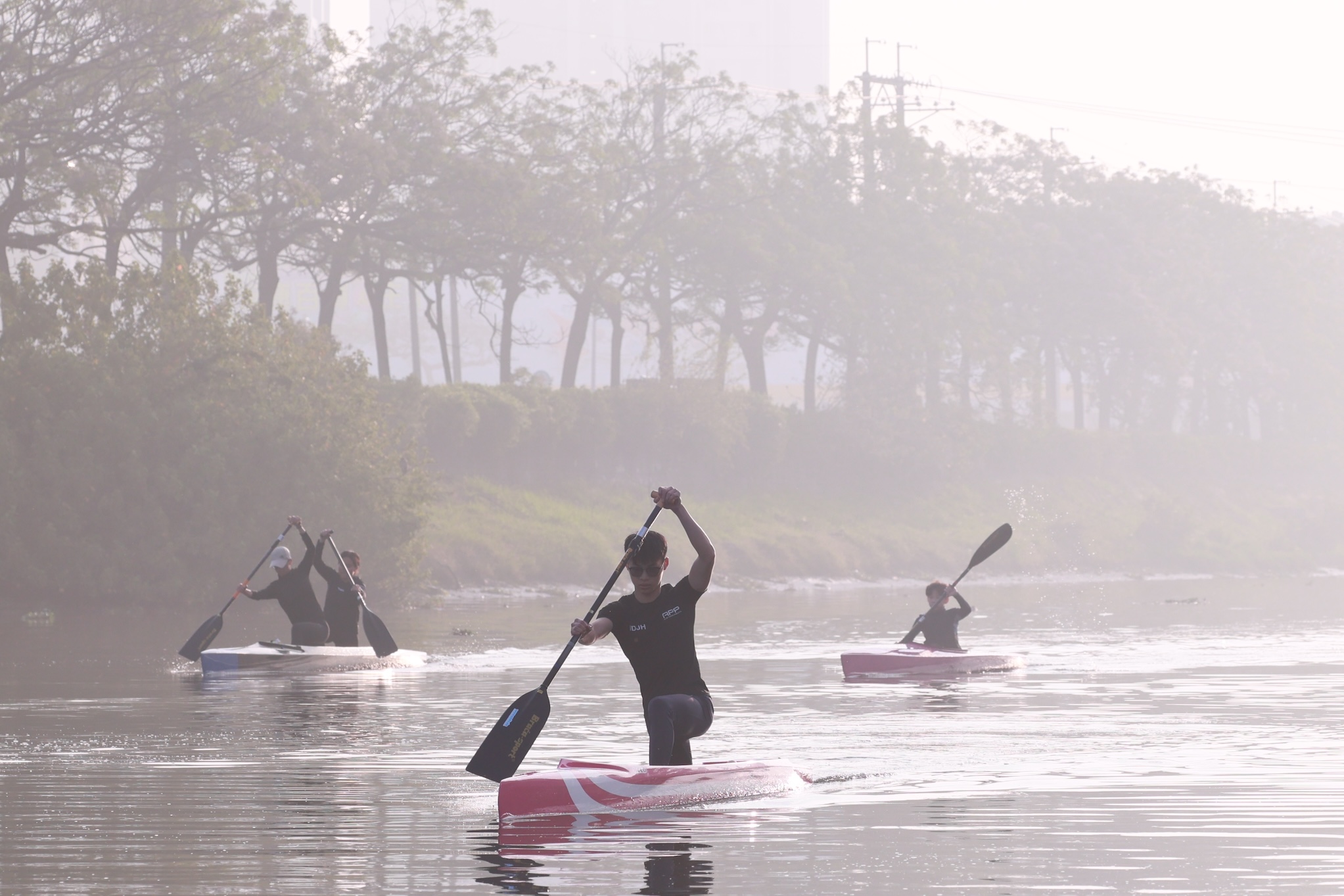 海佃國中輕艇選手,天剛亮就展開練習。(臺南市體育局提供)