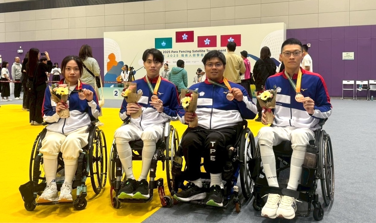 2025 香港輪椅擊劍衛星賽14日在馬鞍山體育館落幕,中華隊共獲得6銅,也是我國首奪輪椅擊劍的國際賽獎牌,教練選手非常感謝中華帕拉林匹克總會的支持,讓他們有機會出國比賽、增廣見聞,期許自我再接再厲,為國增光。