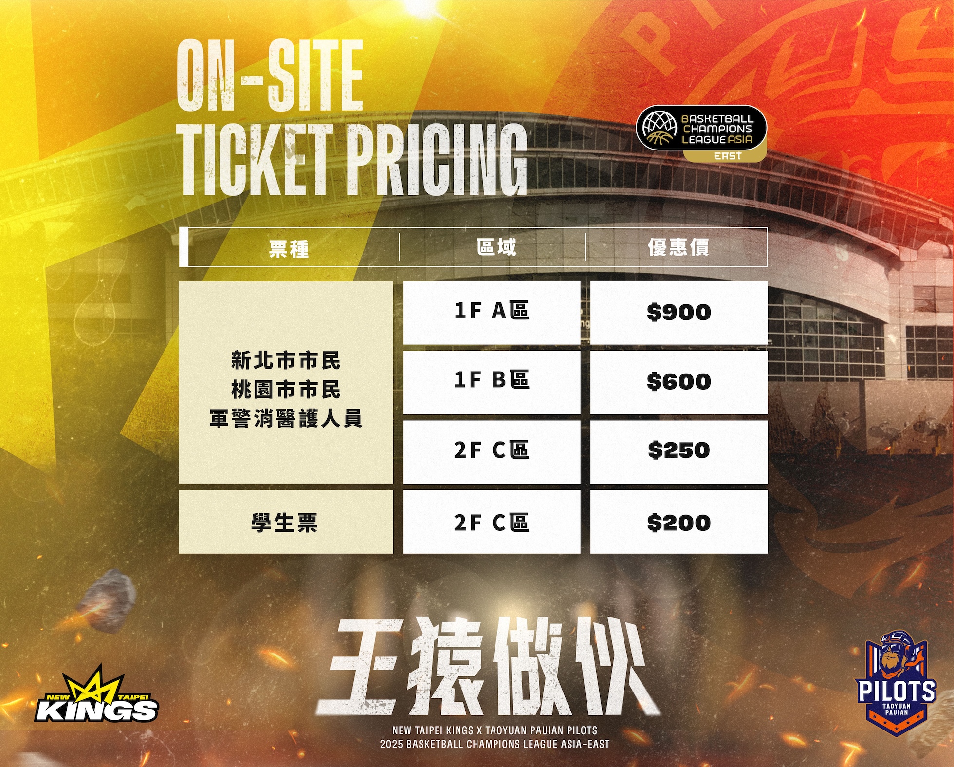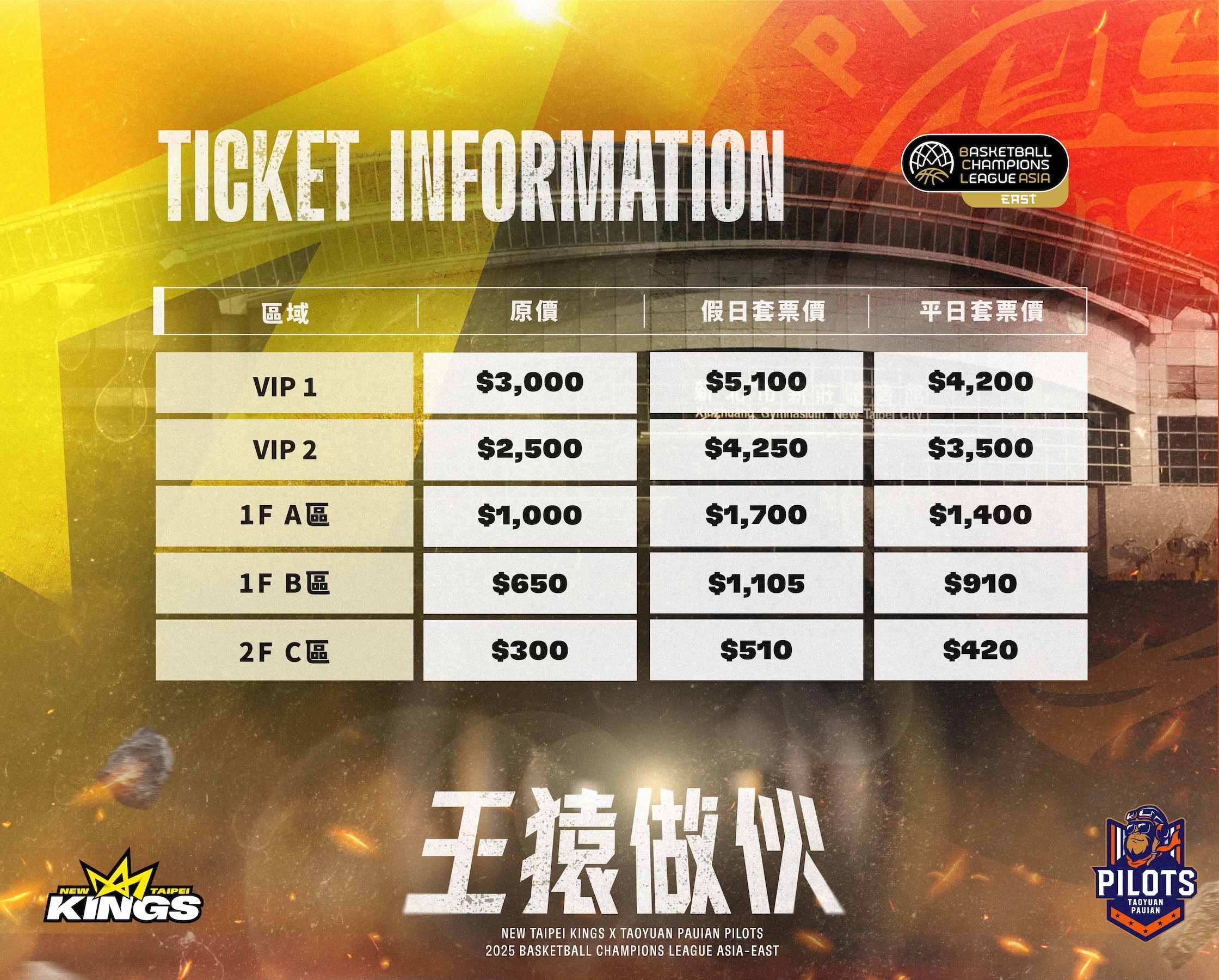 「王猿做伙」BCL臺灣主場票價資訊。(領航猿、國王提供)