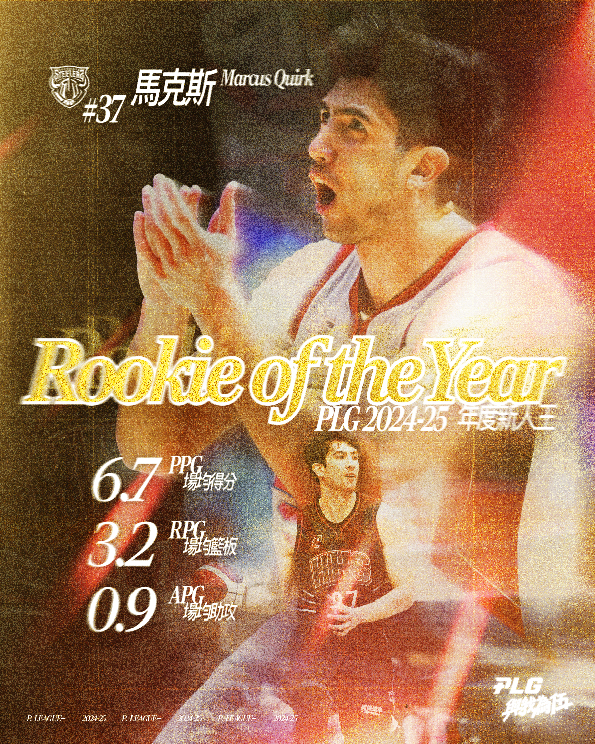 P. LEAGUE+ 今日(05/01)公佈2024-25球季年度第六人及年度新人王,桃園璞園領航猿的李家慷從板凳出發卻繳出先發的成績,亮眼的表現幫助他拿下生涯首座年度第六人獎項。年度新人王的部分,高雄鋼鐵人的馬克斯技壓其它PLG一年級生,成為聯盟史上第2位以外籍生身份拿下新人王的球員。