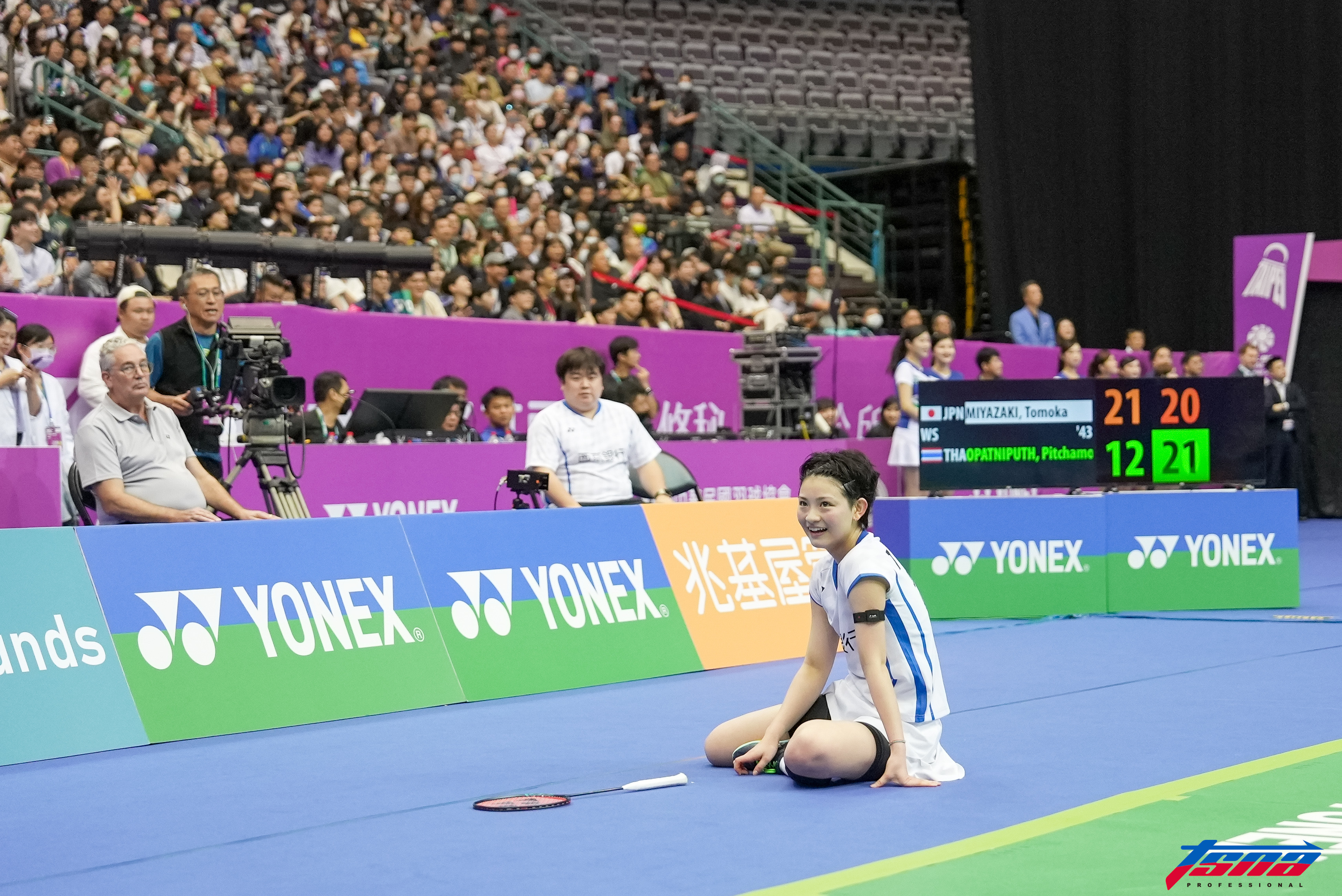 同樣是18歲美少女,已高居世界第8日本宮崎友花今天在台北羽球公開賽決賽苦戰72分鐘,才以21比12、20比22、21比14,險勝小她不到5個月、從資格賽一路殺到爭冠、世界第77泰國Pitchamon Opatniputh,繼去年奧爾良名人賽後,奪得生涯第2座超級300賽冠軍。她表示,很開心戰勝壓力,也希望帶著優勝信心迎接後續大賽。