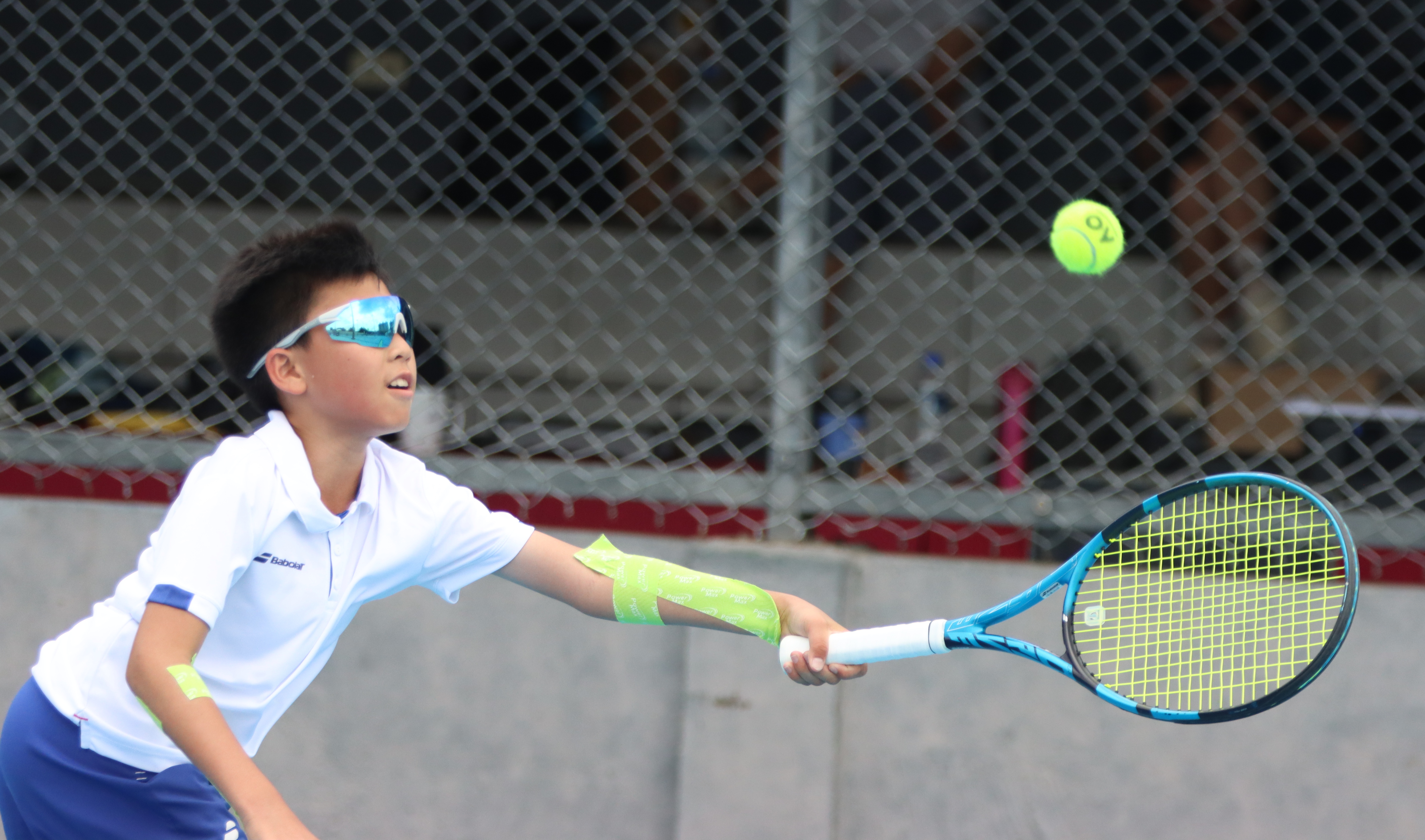 第59屆四維膠帶盃學童網球錦標賽在19日進行五年級男單組決賽,臺北市中山國小的蔡承恩和吳謙立,連續4屆在冠軍戰對決,身高多了20公分的蔡承恩,在技術上也展現超齡身手,最終以6:1、6:0,直落兩盤贏球,締造個人的8連霸。