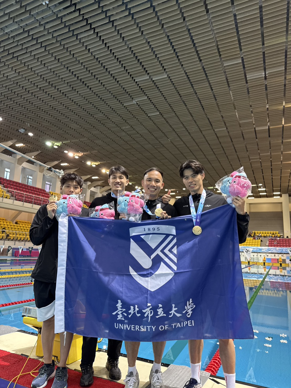 前臺灣蝶式一哥許志傑(右2)在本屆世壯運重拾選手身分,其餘3人左起王星皓、安廷耀、林建良。(許志傑提供)