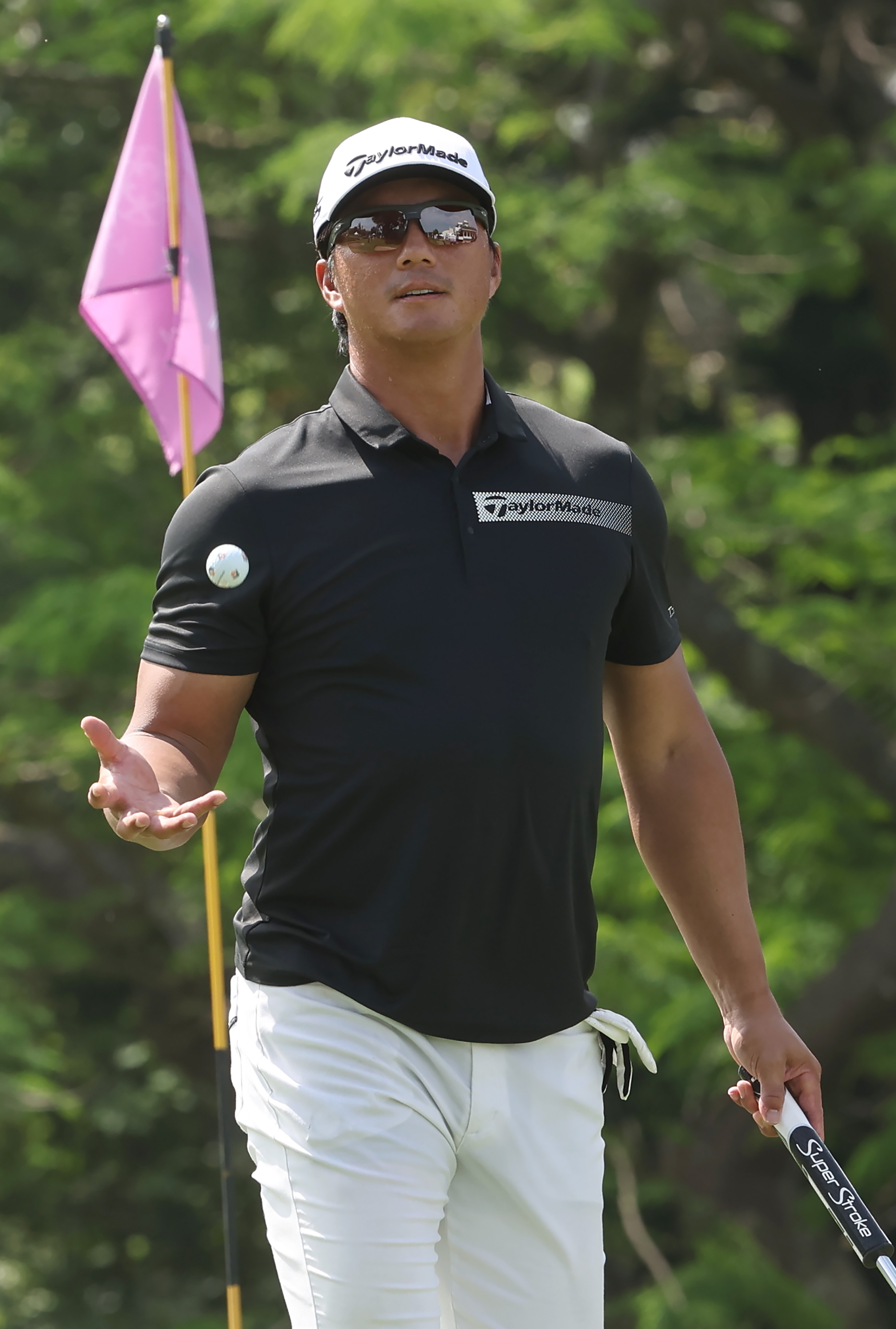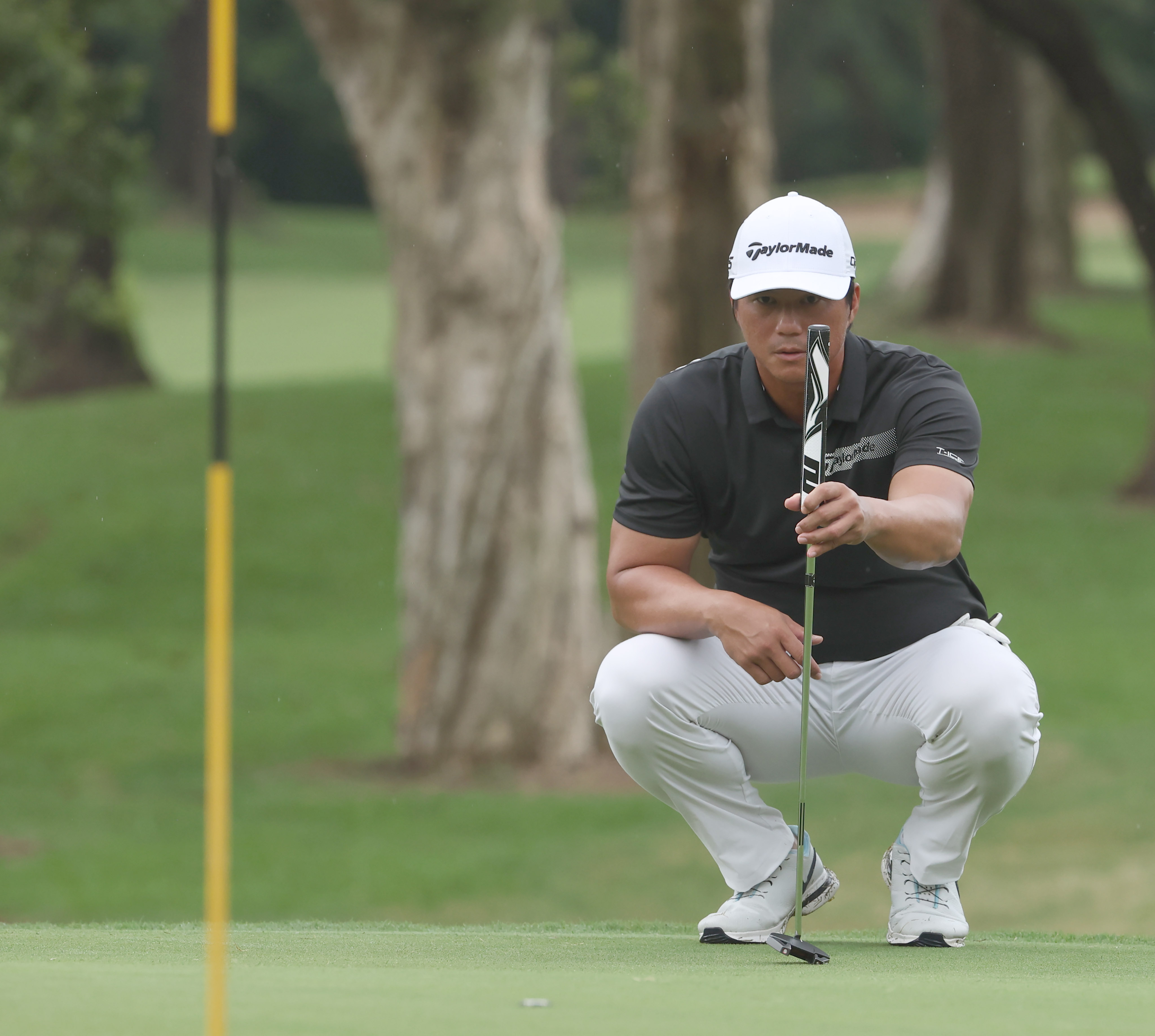 高國輝今日首場在台灣高爾夫俱樂部出賽,以總桿109桿完賽,成績不甚理想,仍笑著說:「真的很緊張,第1洞開球就直接打到隔壁球道!」