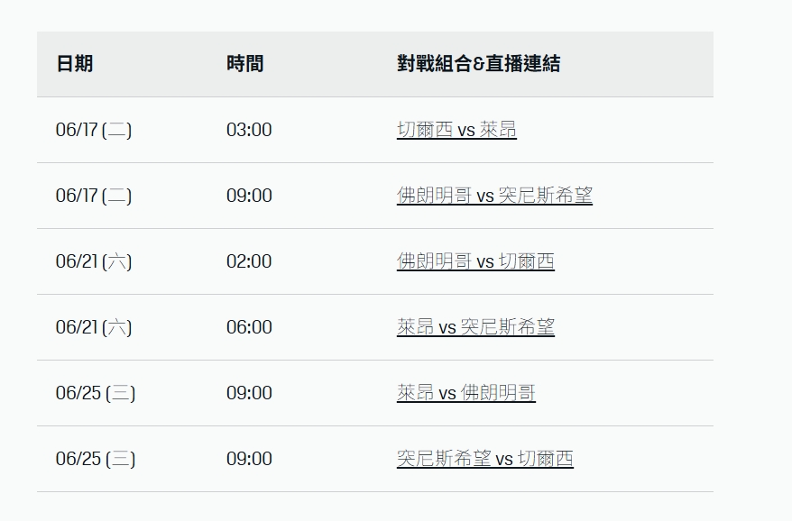 分組對戰表、時間以及免費直播連結