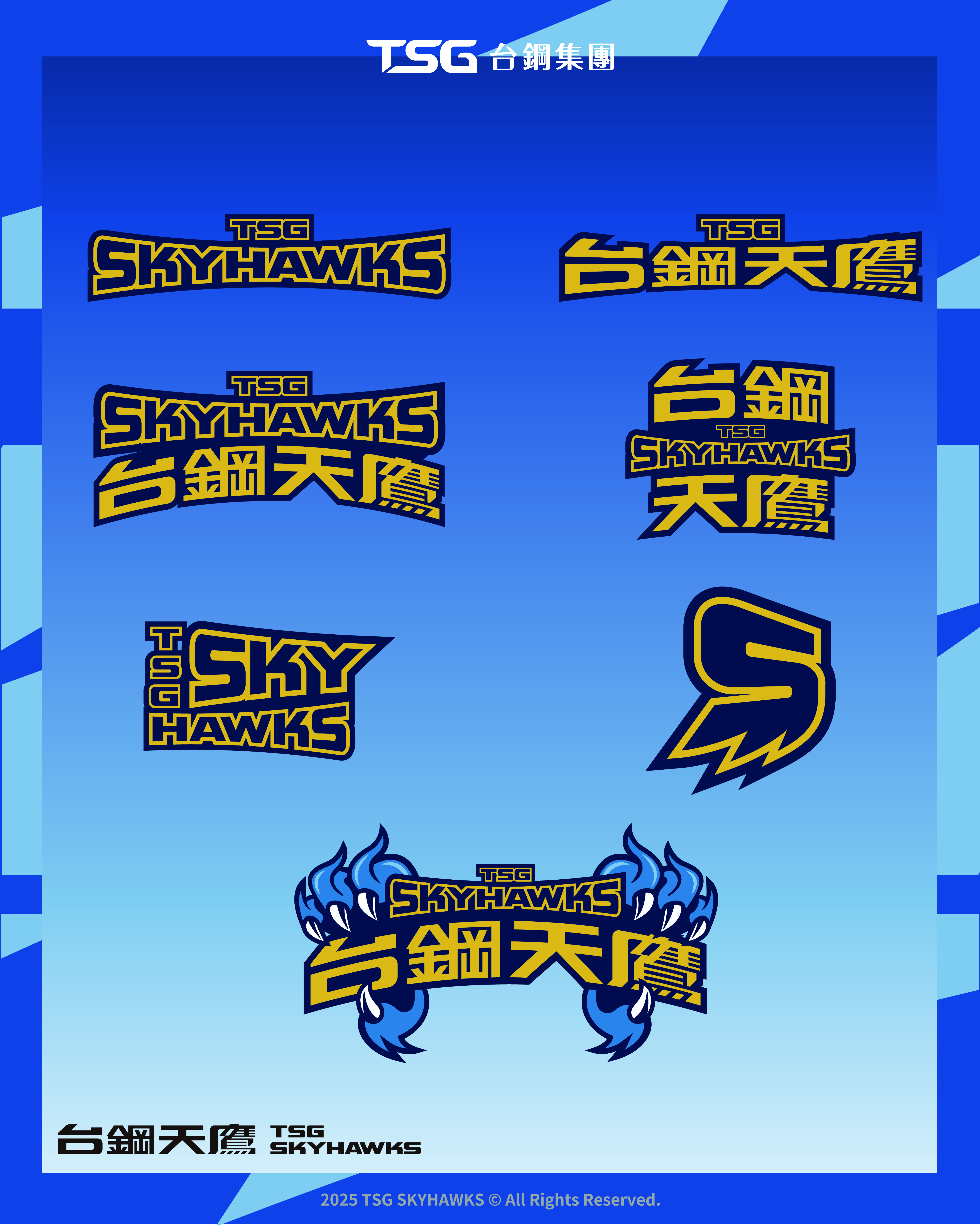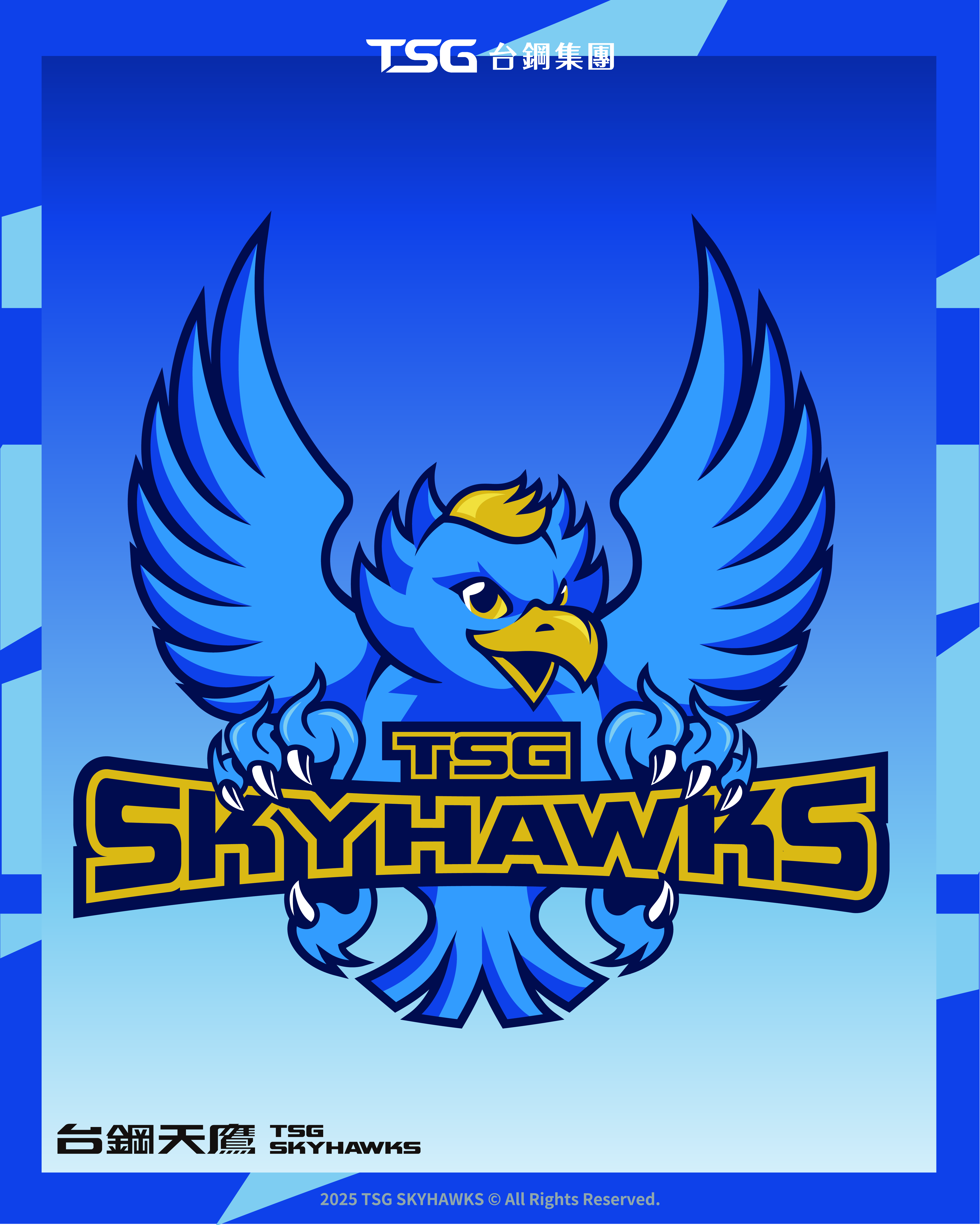 LOGO以天鷹盤踞高空、俯視四方為設計主軸,代表球隊掌握制空優勢,關鍵時刻發動致命一擊,展翅姿態象徵威猛霸氣,鷹眼銳利、目光如炬,傳遞無所畏懼迎戰挑戰的態度;鷹爪緊抓字形,體現絕對力量與自信,掌控每場賽事的決心。