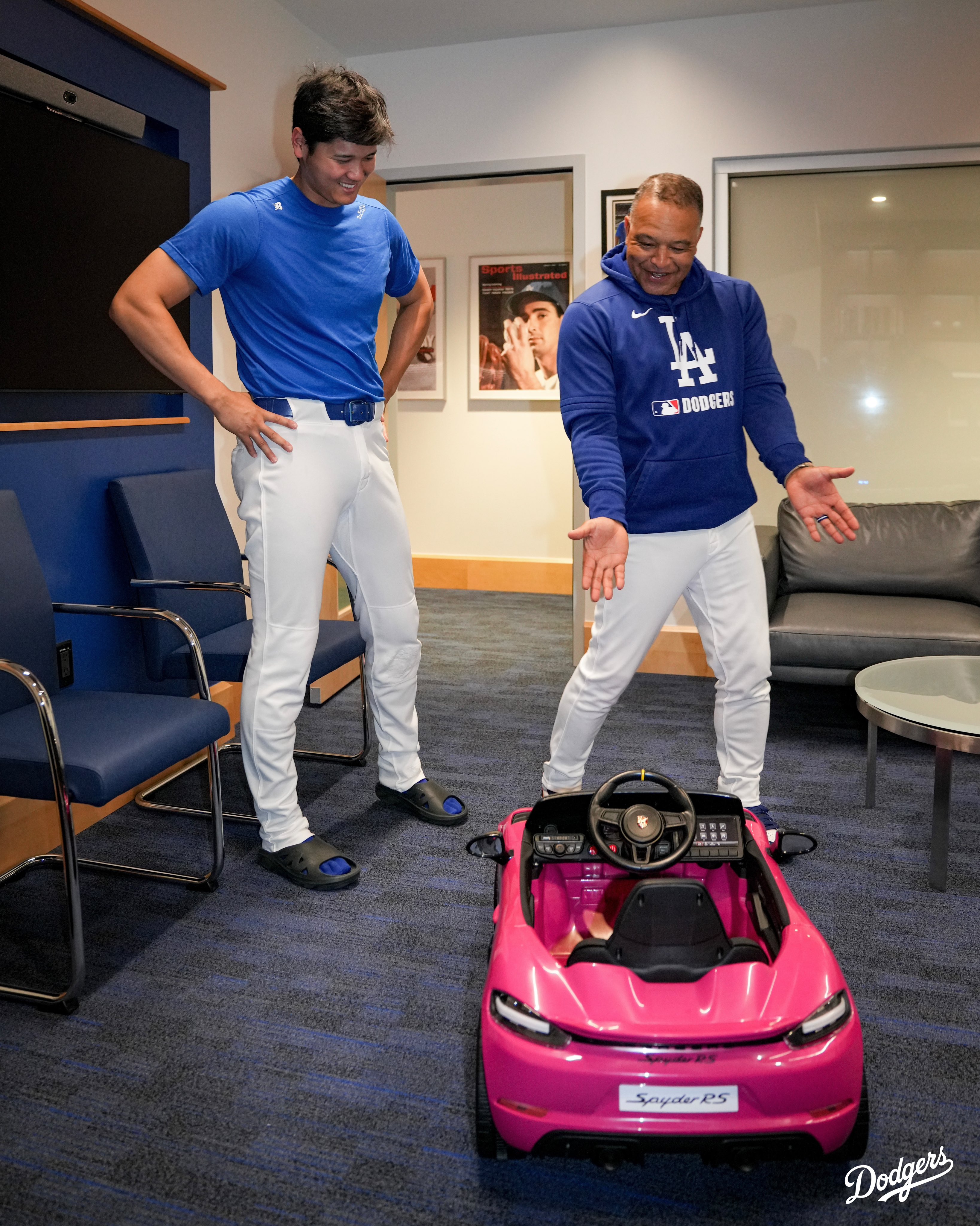 道奇隊大谷翔平與總教練Dave Roberts的「車子」惡作劇再度上演!Roberts送給大谷翔平一輛「新車」,卻是要送給他的小女兒,實際上是一台兒童版的遙控電動車,而且是一台粉紅色保時捷。