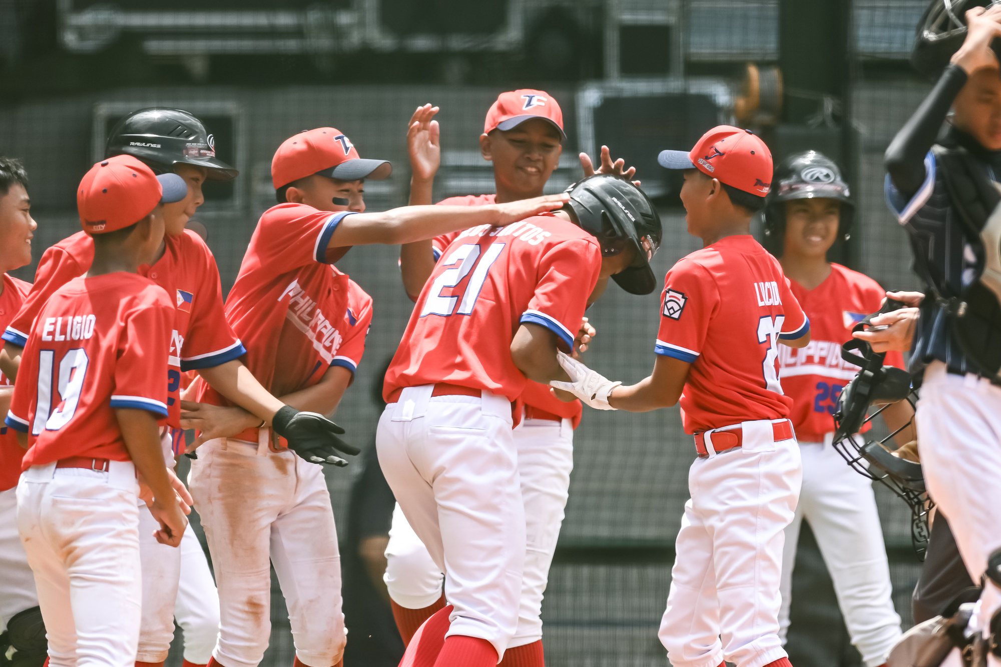 Delos Santos陽春砲隊友慶祝。(台灣世界少棒聯盟提供)