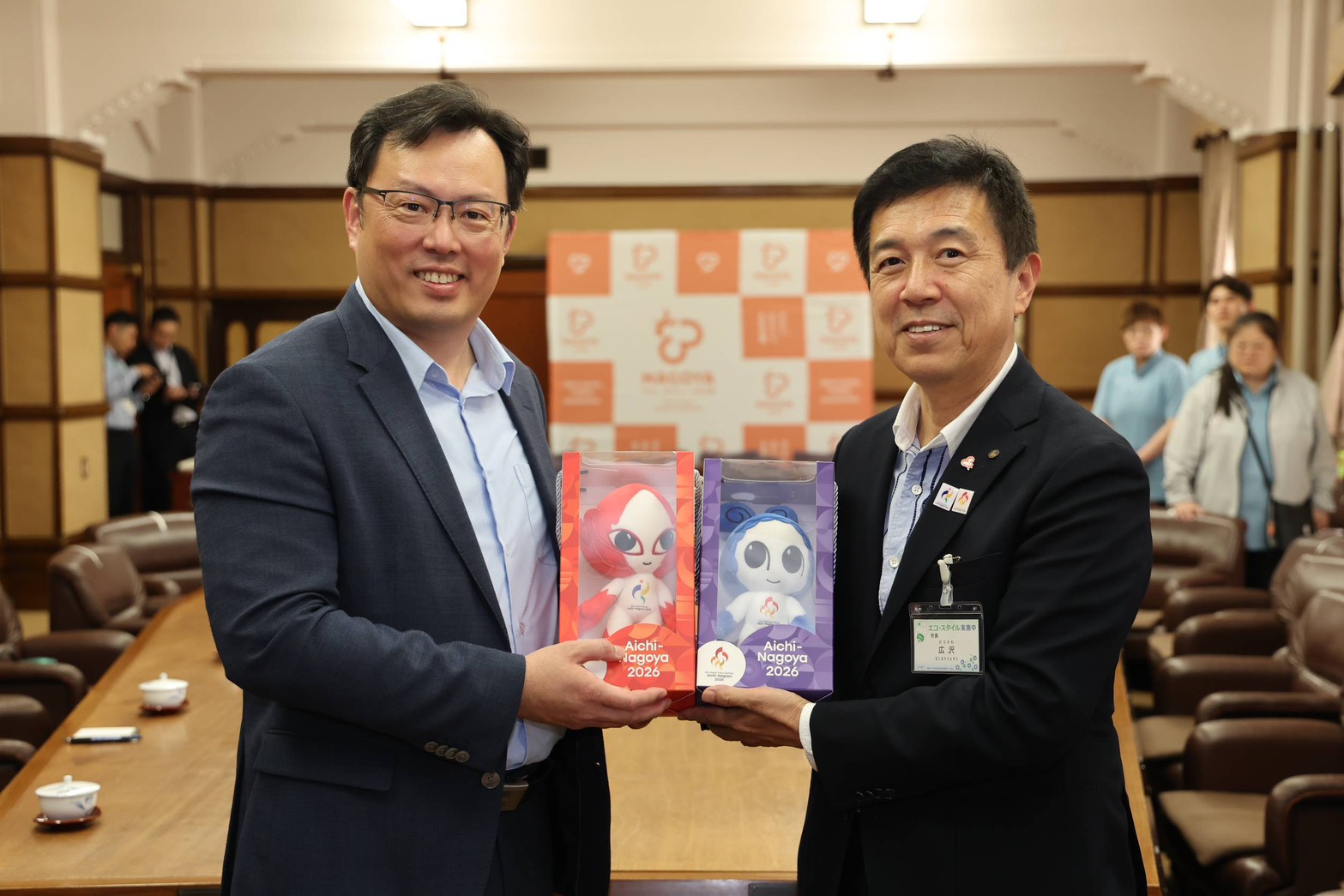 古屋市政府於來臺參加2025年世界壯年運動會期間,由副市長杉野綠及名古屋市日台議員聯盟會長藤田和秀率團拜會體育署,除表達對我國代表團的高度重視,亦明確承諾亞運期間將全力協助我方所需協助,充分展現對臺灣運動發展之支持。
