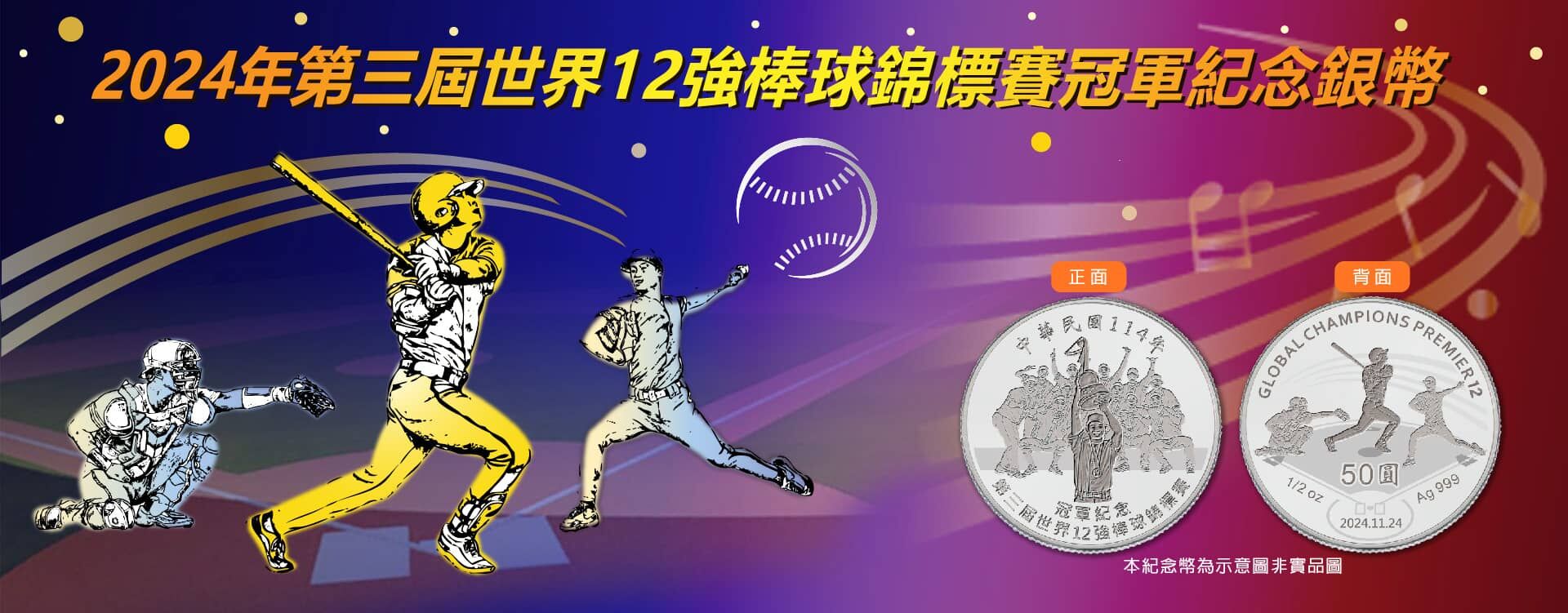 央行表示,本紀念銀幣鐫有面額新台幣50元,含銀1/2英兩、成色999;正面以歡慶奪冠為主題,球員高舉獎盃並歡呼勝利,刻劃我國代表隊奮戰不懈、勇奪冠軍的光榮時刻;正面上緣鐫「中華民國114年」,下緣鐫「第三屆世界12強棒球錦標賽」及「冠軍紀念」;背面以棒球運動為主題,展現球員在場上投球、打擊、接捕動作中所蘊含的力與美及拚搏精神;上緣鐫「GLOBAL CHAMPIONS PREMIER 12」,圖中鐫「50圓」、「1/2 oz」、「2024.11.24」及「Ag 999」。