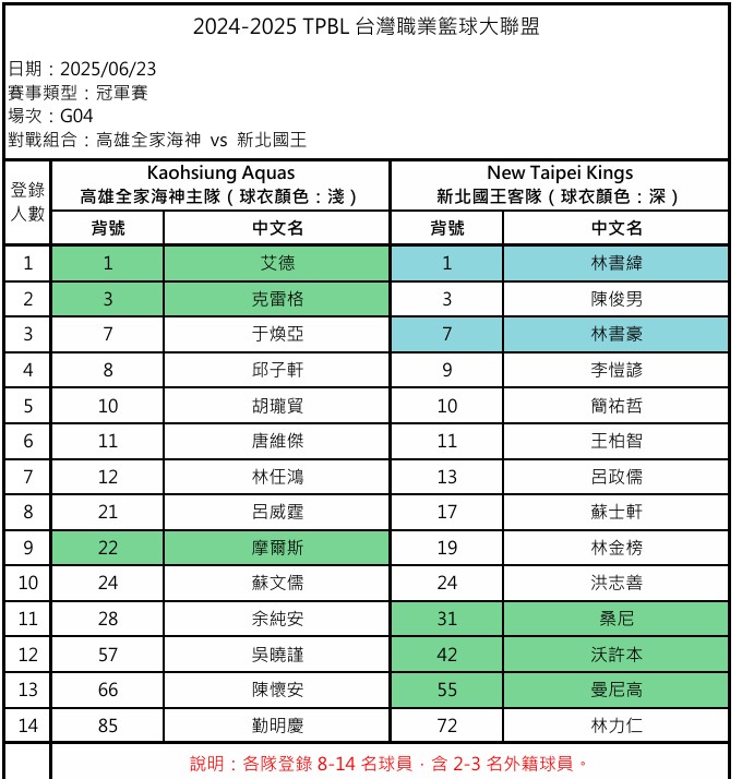 TPBL 冠軍賽G4登錄名單。(TPBL提供)