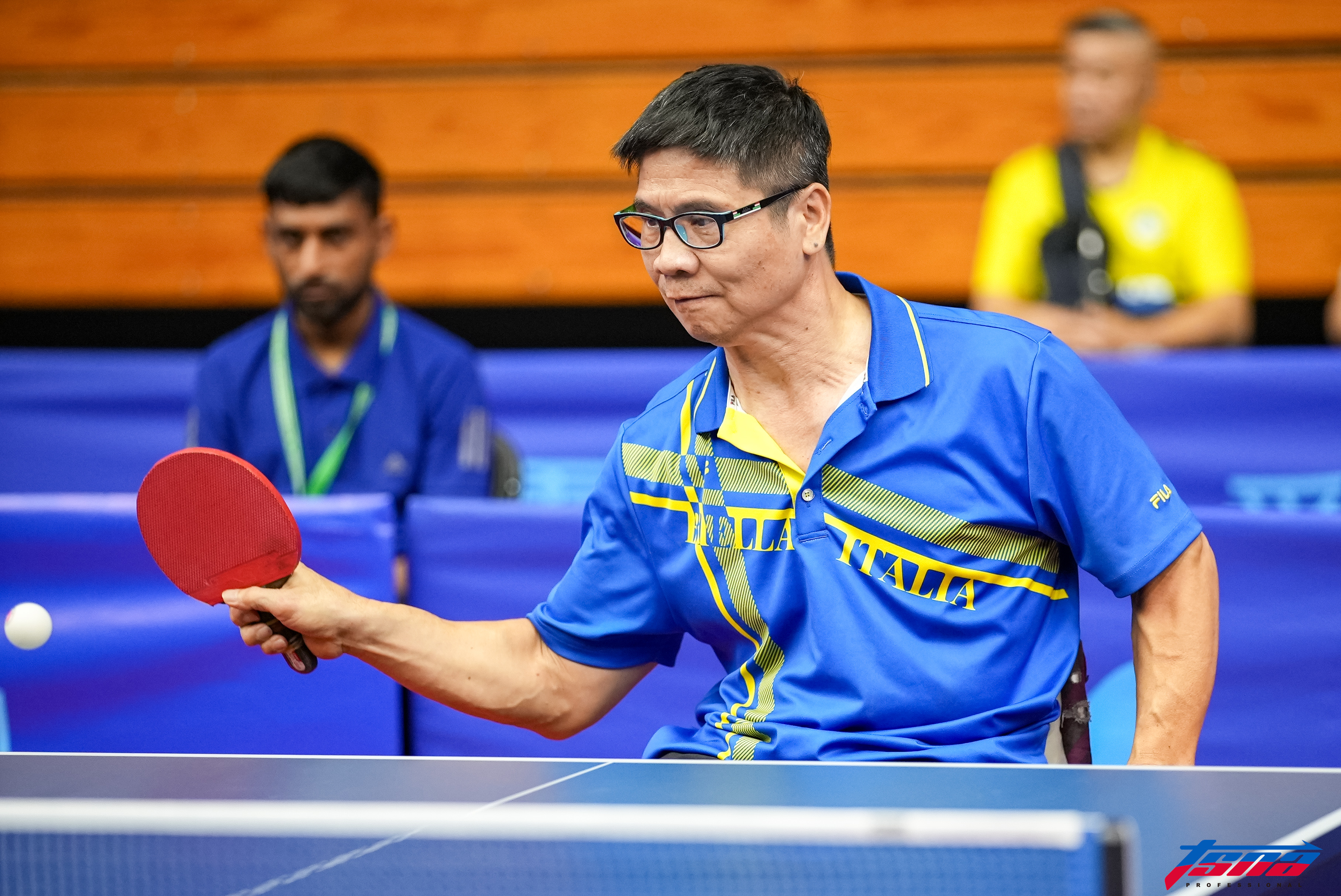 2屆帕運銀牌、前世界球王程銘志在2011年騎車遭酒駕汽車撞倒導致截肢,從小打桌球到大的他改投入帕拉桌球,在現行1至5級合併計算排名下仍高居世界第15。他今天在3人分組2站全取6局拿下第1名晉級,且因是頭號種子,正賽直接保送次輪(8強)。