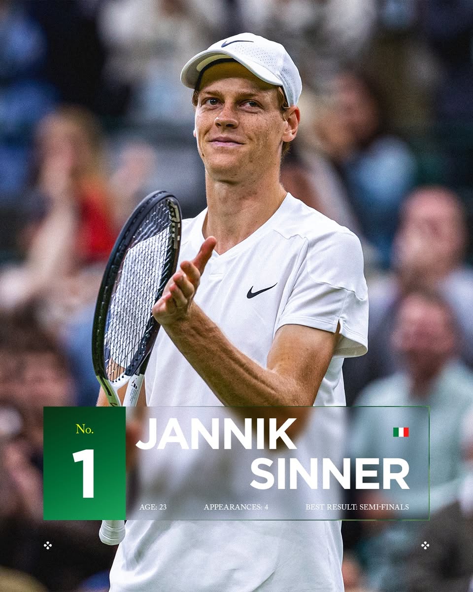 溫網》Jannik Sinner、Aryna Sabalenka 分別為男女單打頭號種子