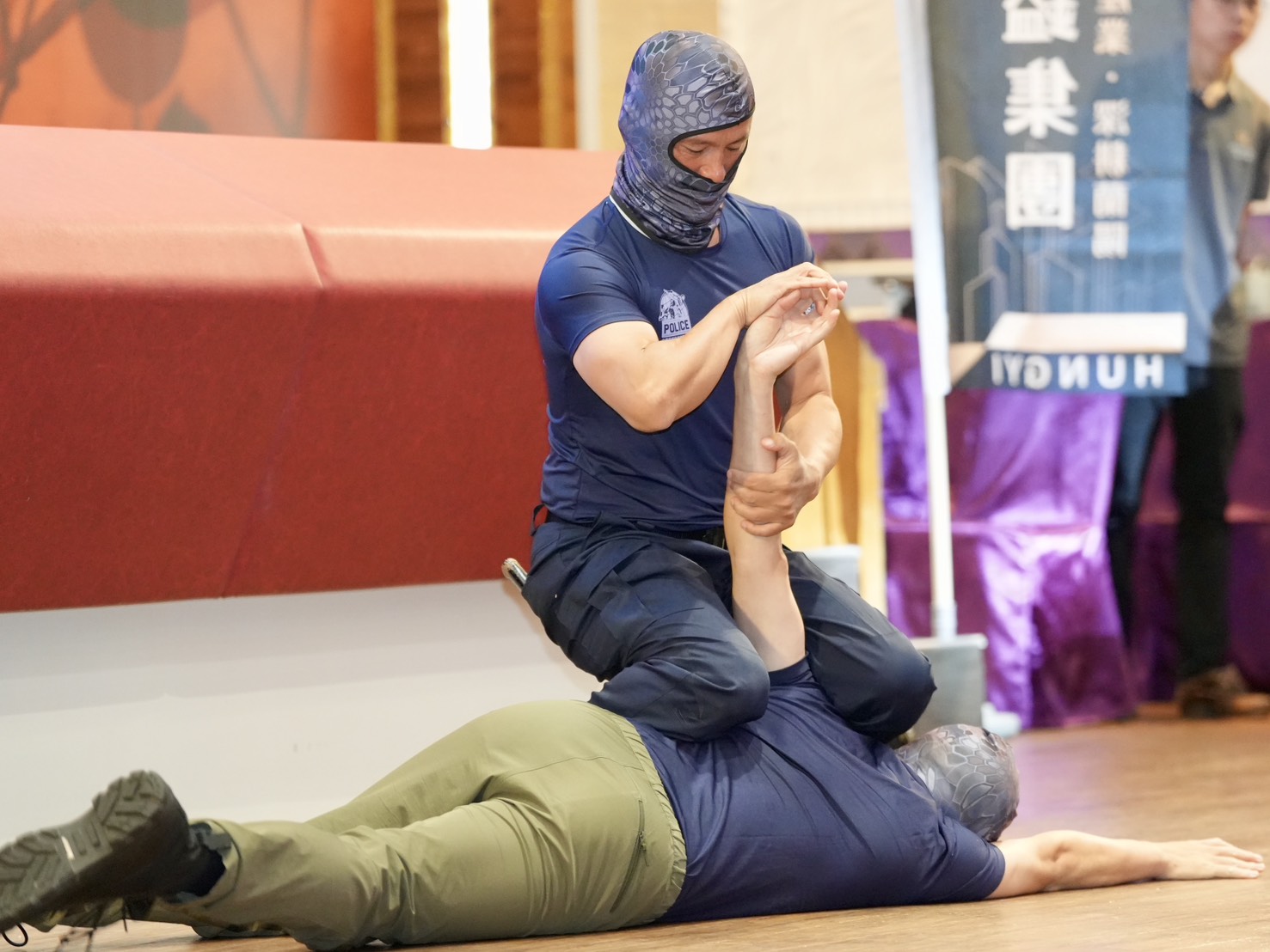 今天記者會上,有品勢和防身術的表演,中華警察跆拳道武技協會理事長林以勝期望全力推動跆拳道及警察武技運動。