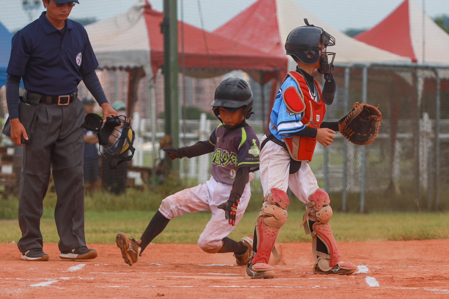 後續第3棒再補上一支三壘安打,外野手傳球發生失誤,打者直接回本壘追加分數,接著第5棒擊出游擊穿越安打再下一城,第6棒則因投手投球提前落地,讓壘上跑者趁隙奔回本壘,首局結束竹風少年就取得6比0領先。