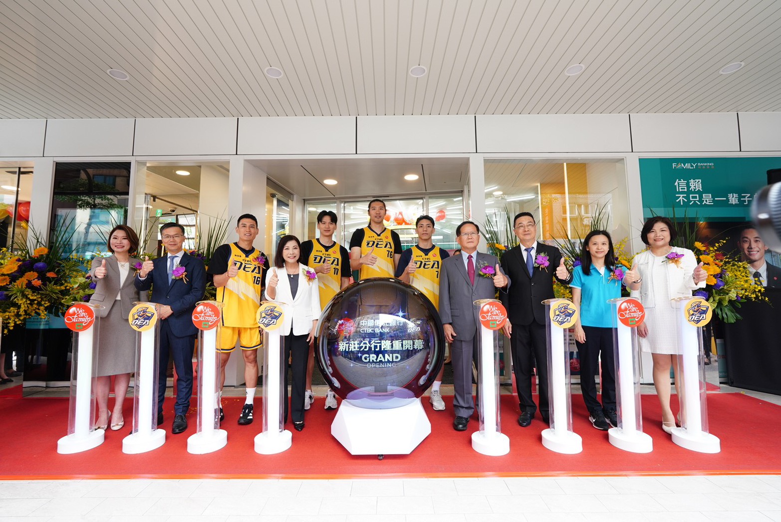 中國信託銀行今天舉行「中國信託 新莊特色分行」開幕儀式,新北中信特攻籃球隊表示,嶄新據點融合在地特色與運動活力,不僅結合球隊主場元素,更攜手鄰近的「台灣盲人重建院」,打造無障礙、友善共融的金融空間,落實「We are family」的品牌精神,成為金融服務創新與多元包容的示範據點。