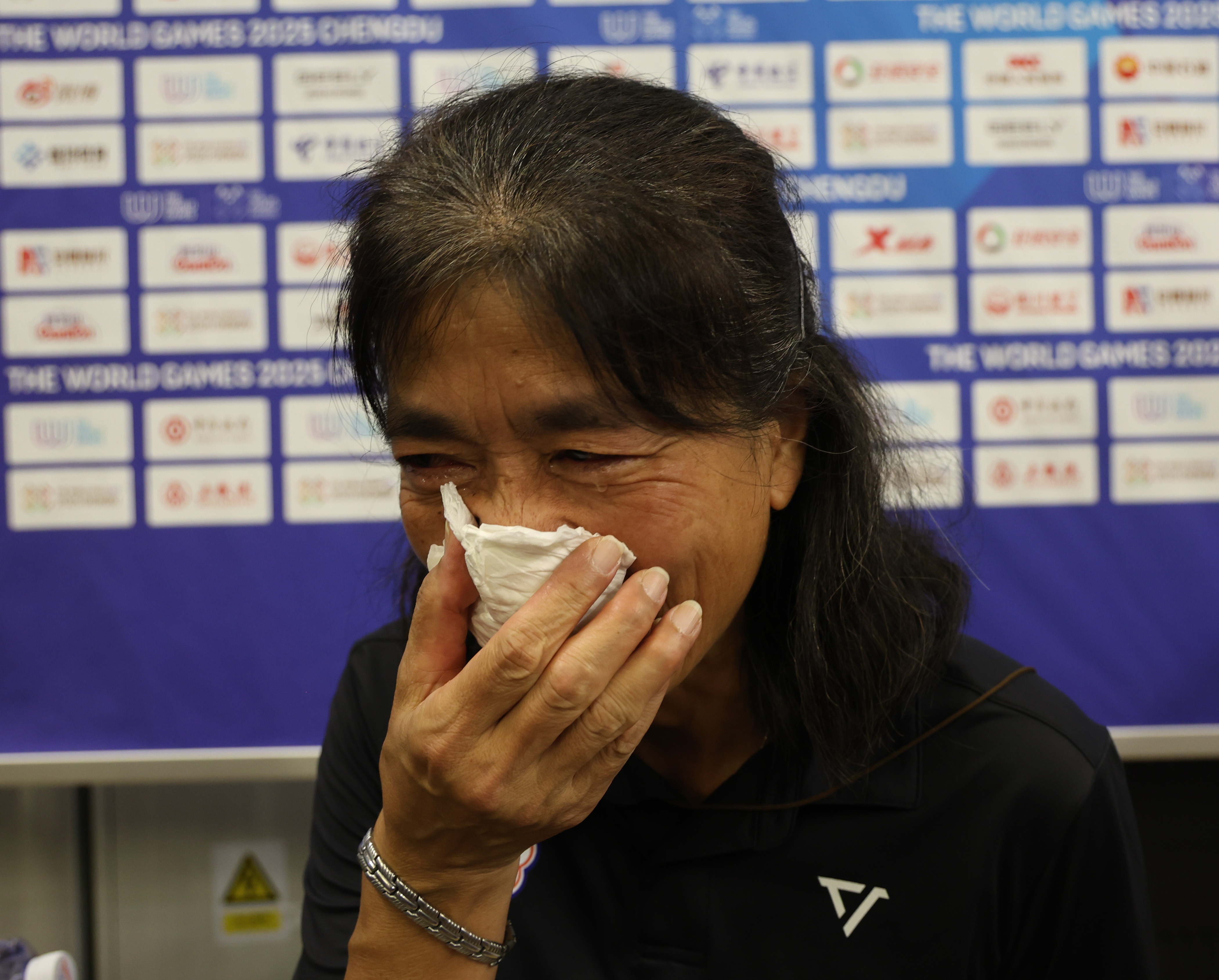 中華隊教練謝芳怡賽後激動表示:「很開心!這可能是我最後一次帶世運會了,謝謝他們帶給我一面獎牌!」