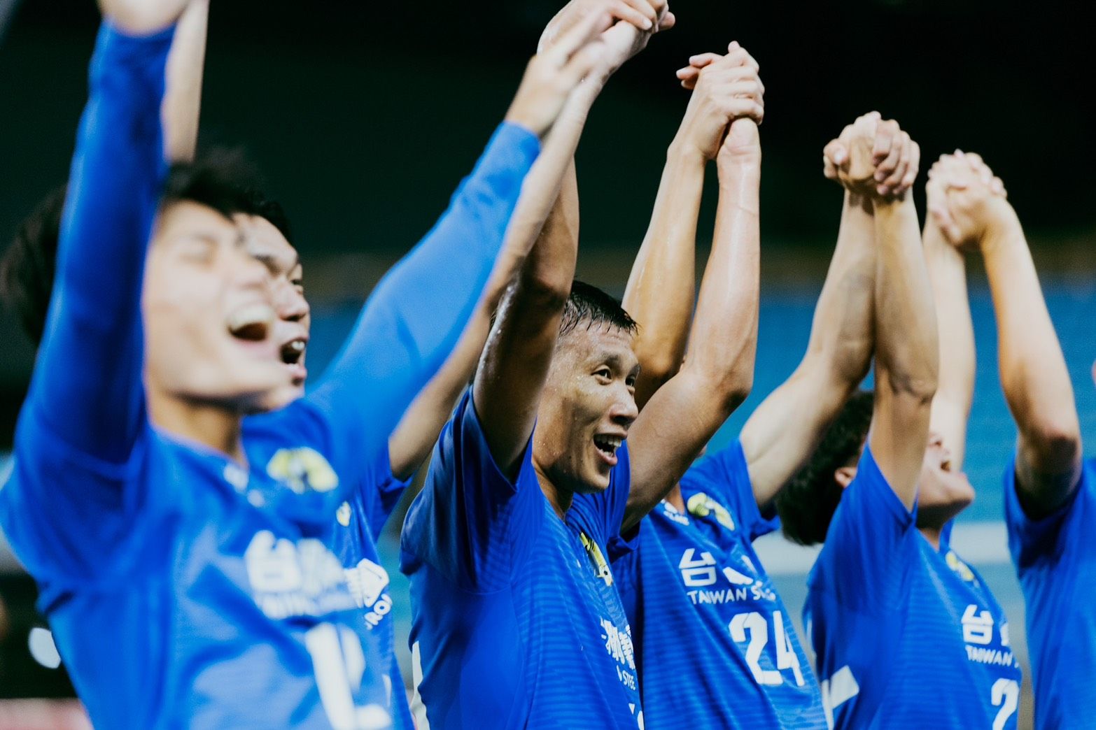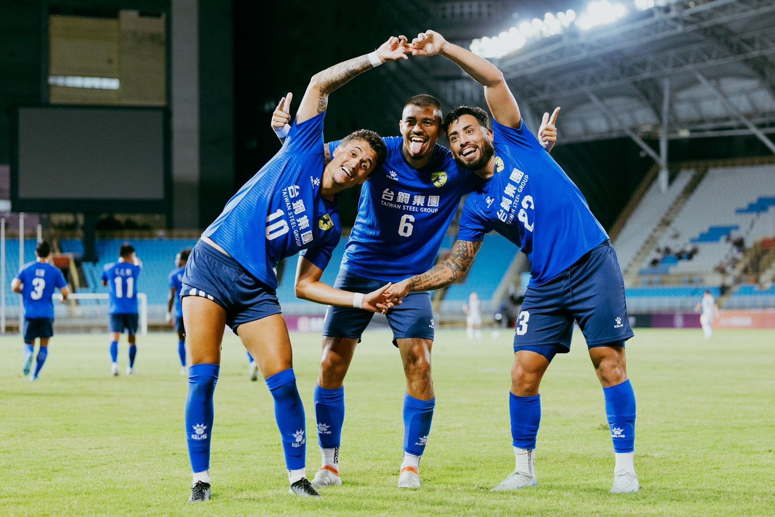 攻進第一球的阿蘭達和隊友開心慶祝。中華足協提供