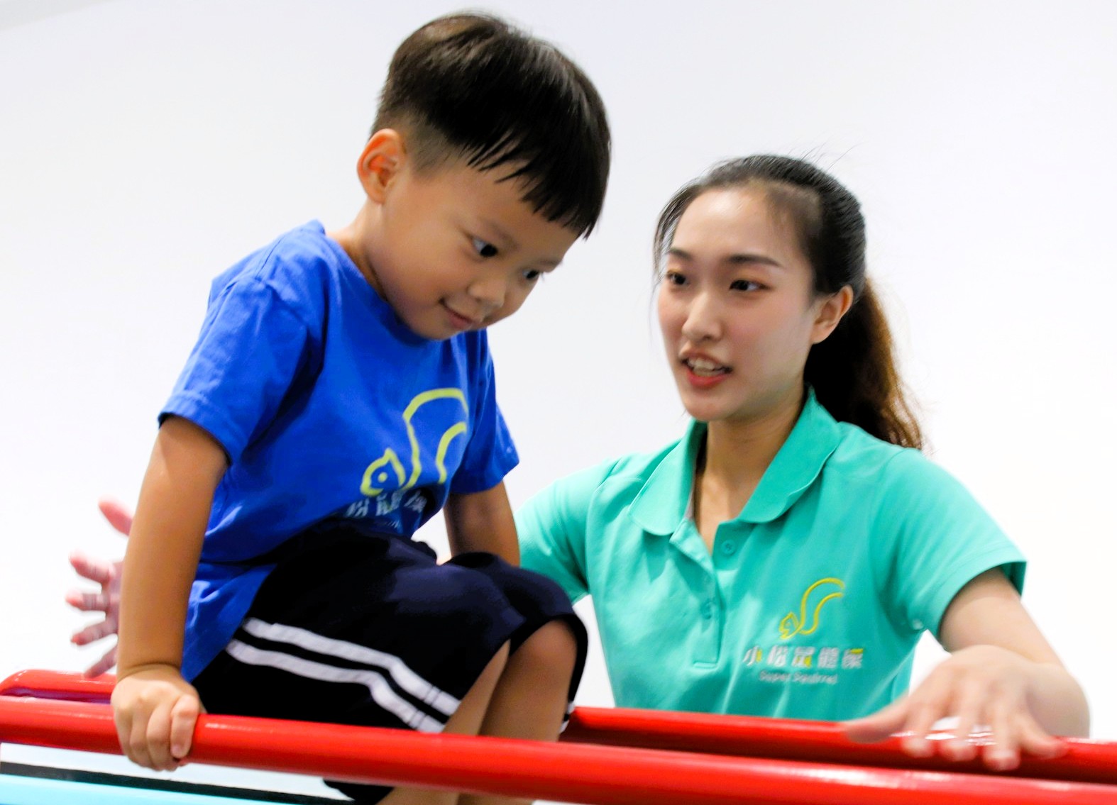 「但其實這些孩子需要的不是更多動作,而是更清楚的引導。」詹蕎僖說道。在小松鼠體操的課堂中,教練會用逐字咬清楚、慢速說明、一步一提示的方式,協助孩子進入狀況。「我們常發現,當你語速放慢、眼神平視,孩子反而能專注下來,因為他終於知道你在說什麼。」