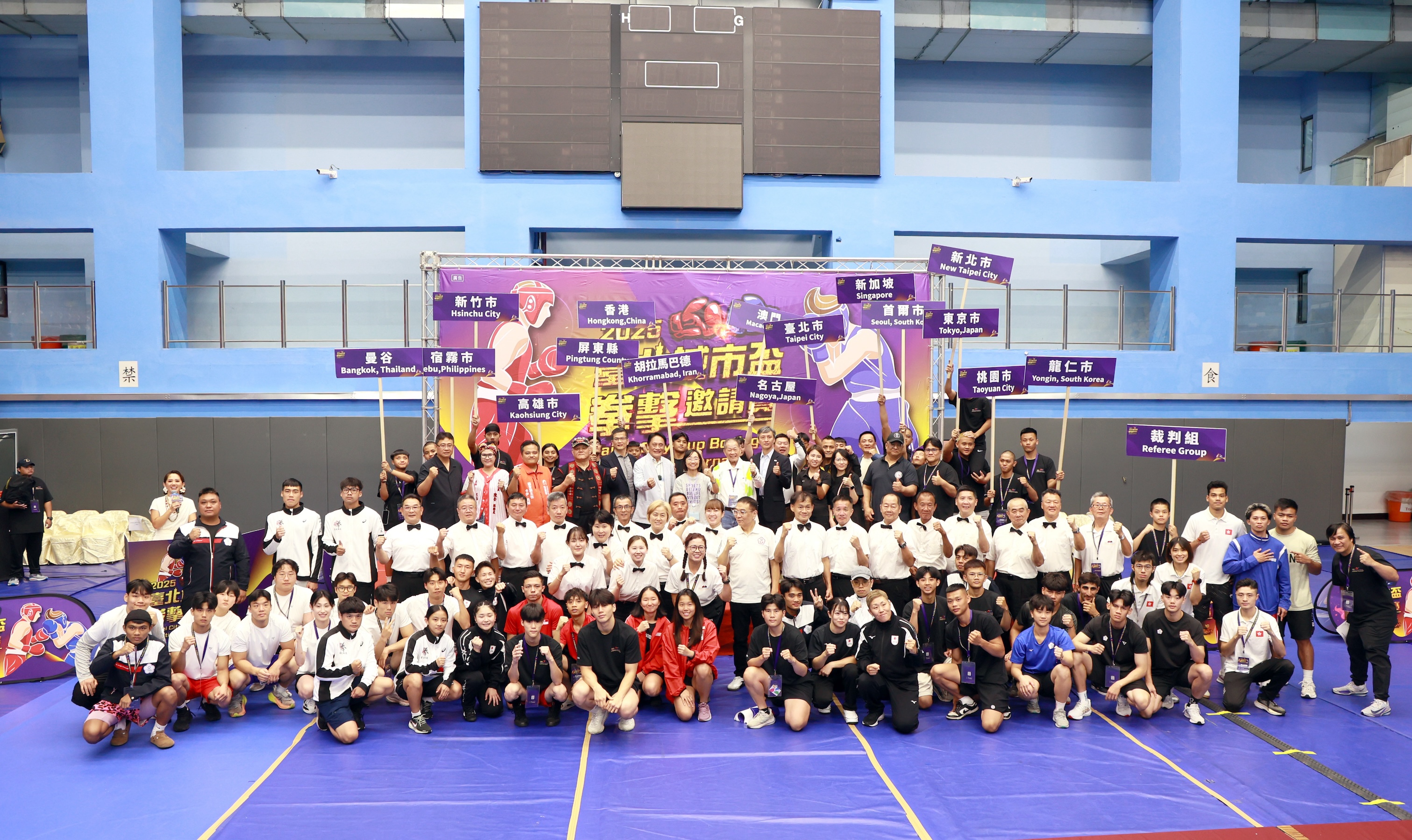 2025臺北城市盃拳擊邀請賽開幕典禮大合照。(臺北市政府體育局提供)