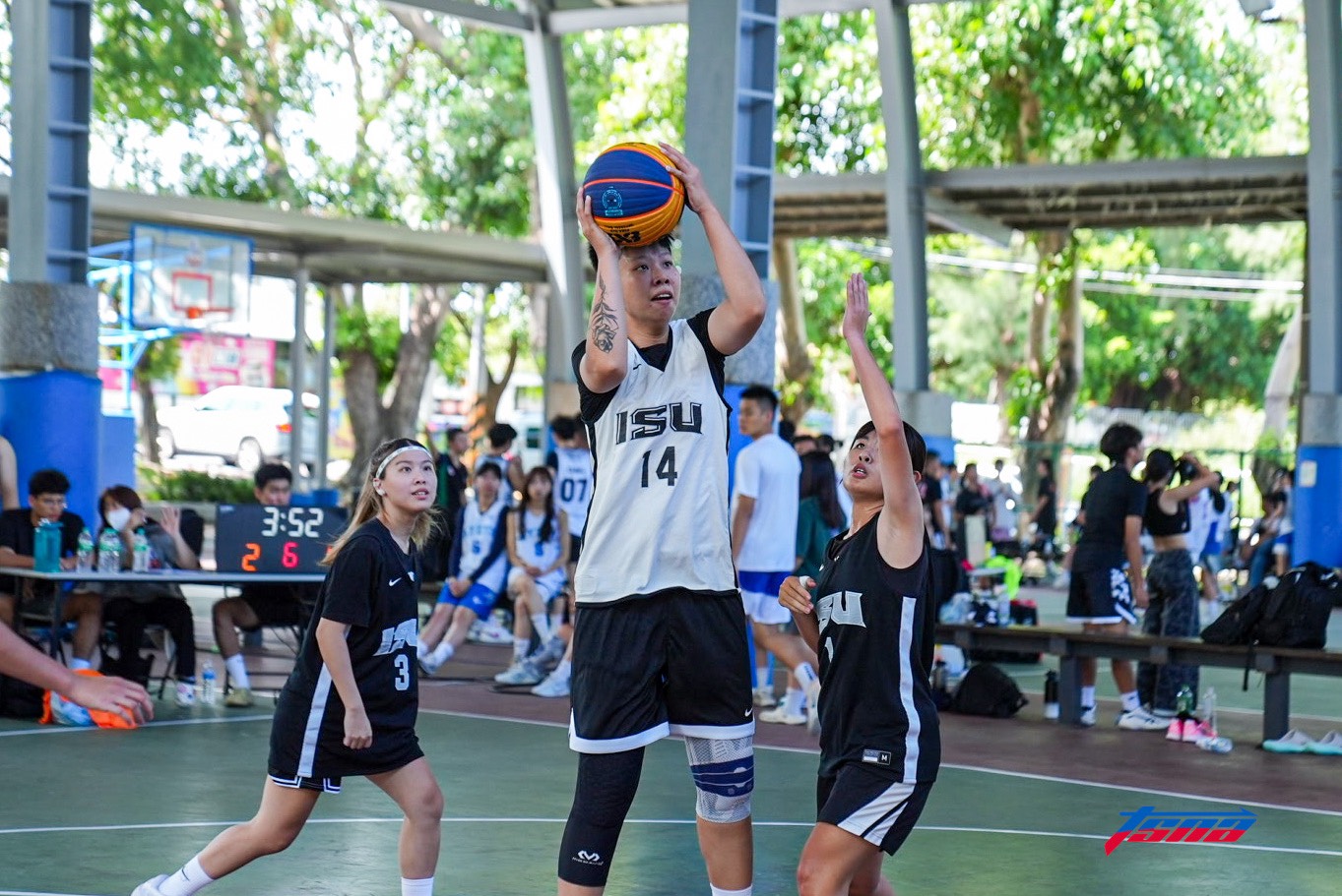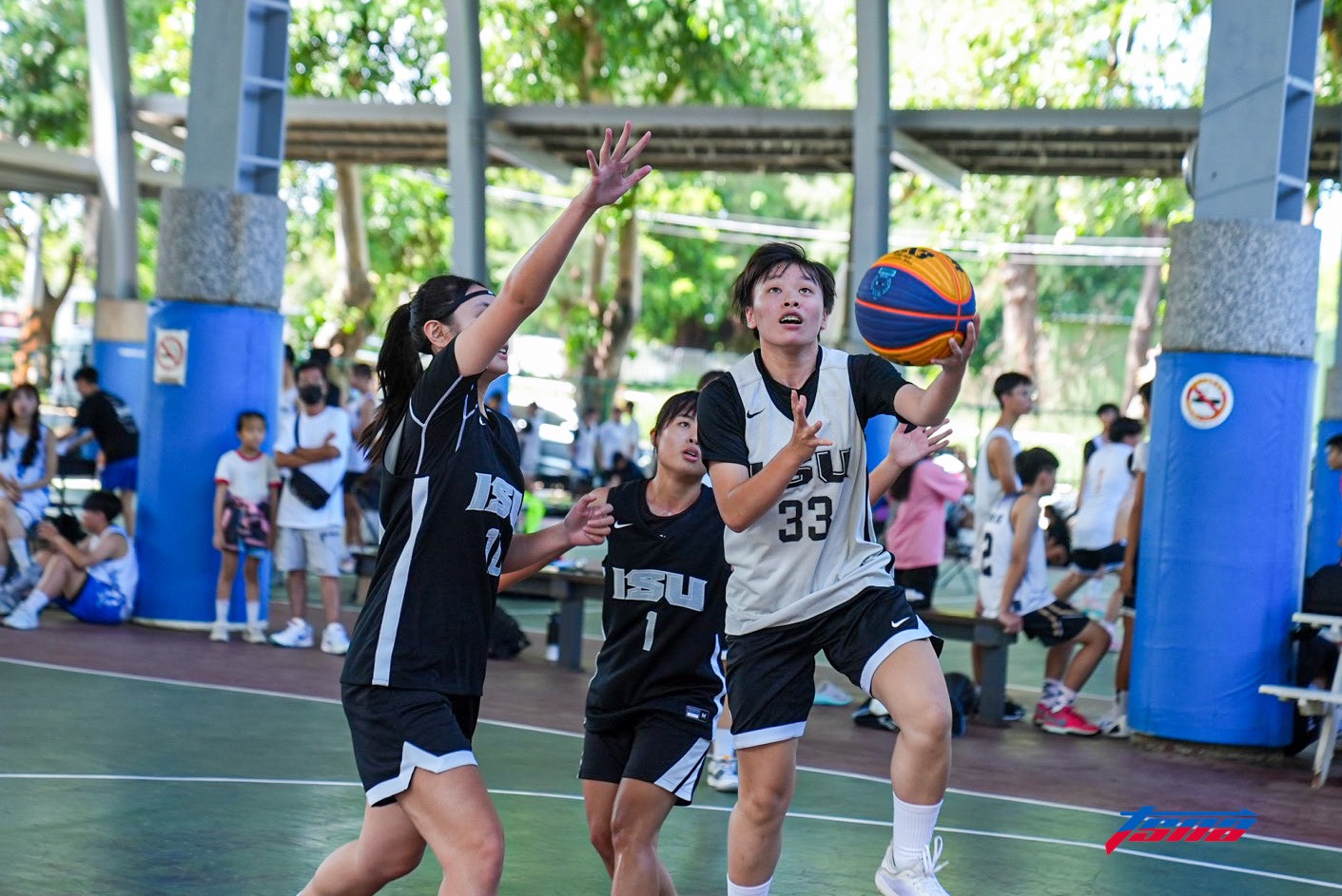 「巨寶天團」由許麗薇、廖子涵、藍珮菁、溫雅云組成。平常在義守校隊訓練多以5對5為主,許麗薇分享5對5與3對3的差異,「剛好是南部學校,所以來比賽。三打三速度比較快,我們剛剛只打10分鐘,但已經非常累了。」