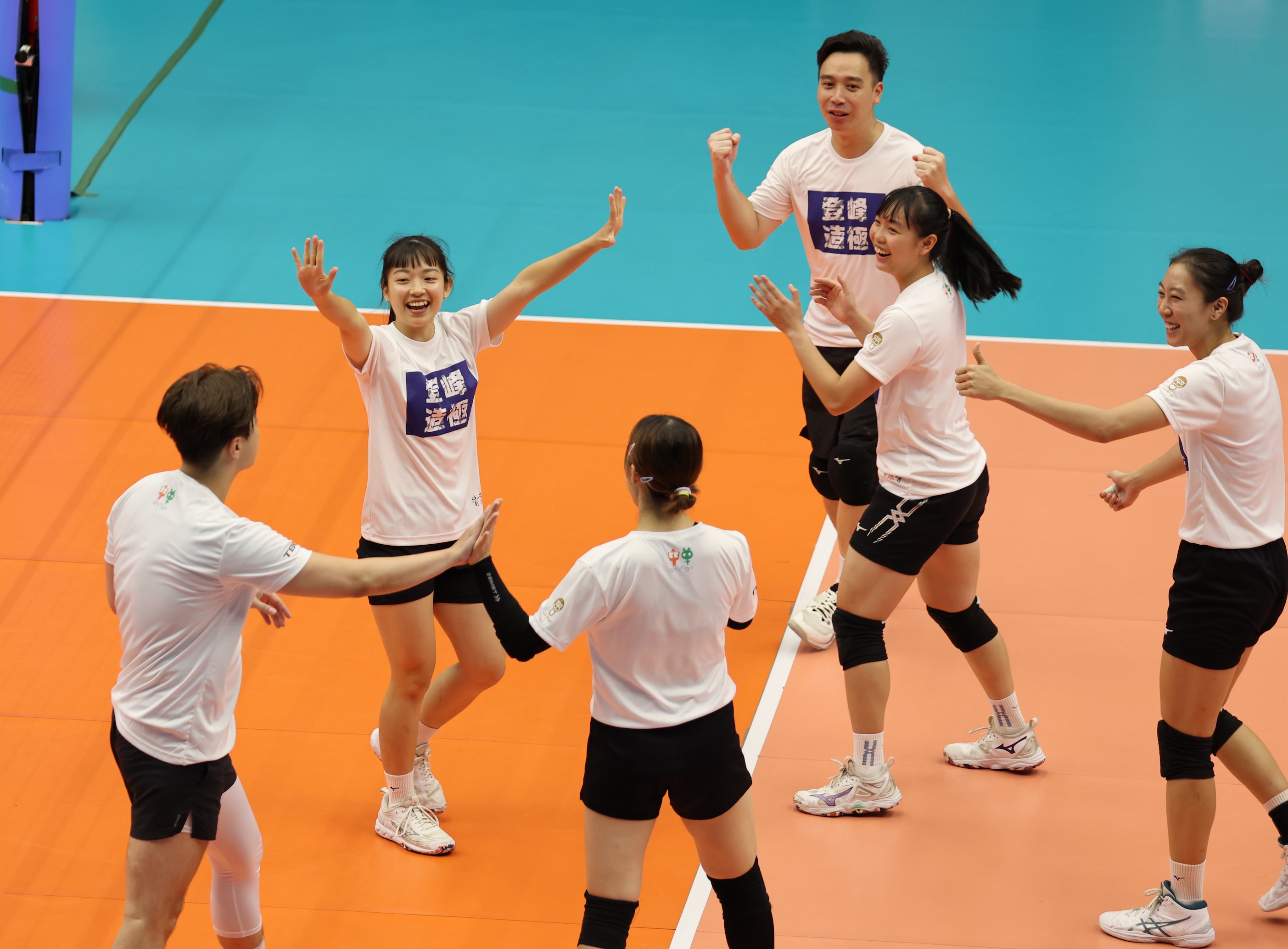 2025登峰造極青年排球邀請賽,臺北鯨華女排隊和公益明星隊進行表演賽。(中華文化教育暨體育交流促進會提供)