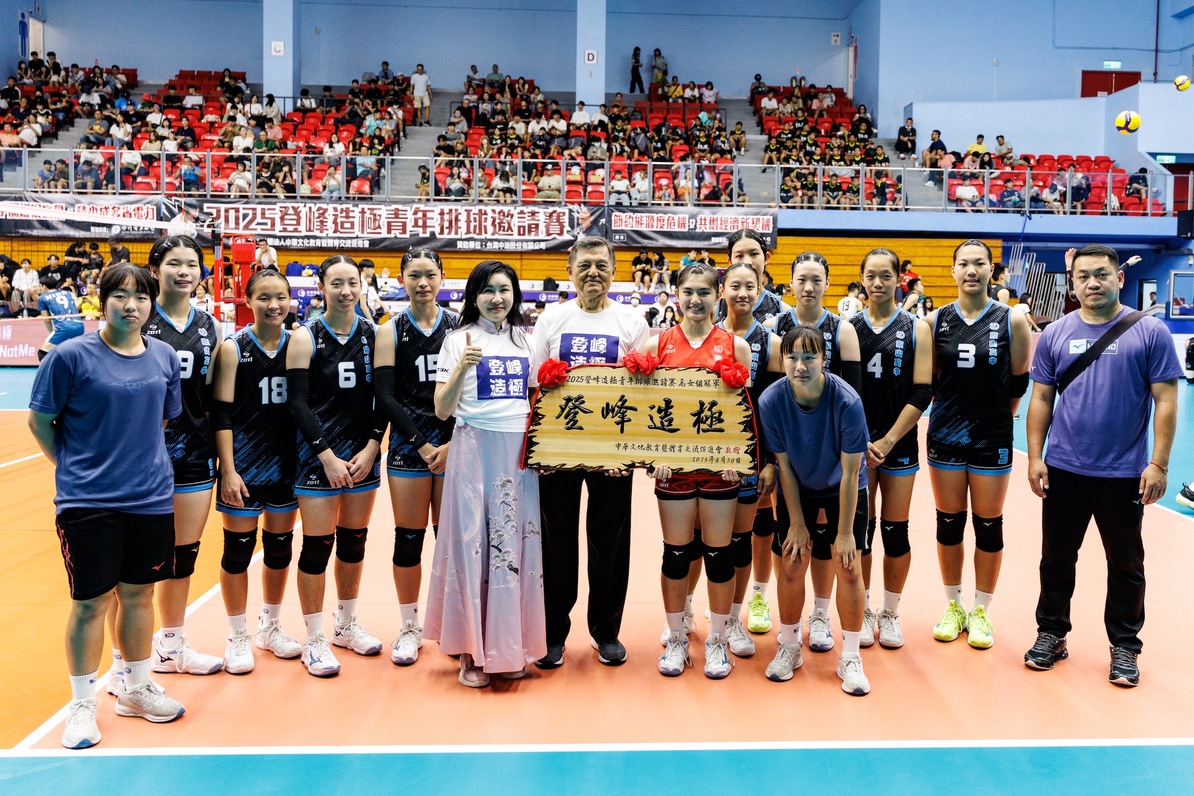 2025登峰造極青年排球邀請賽今天在臺北體育館落幕,女子組由東山高中寫下三連后,而男子組由華僑高中繼首屆後再度稱王。臺北鯨華隊和公益明星隊今天中午更進行表演賽,推廣排球,吸引許多追球星、明星的粉絲,現場相當熱鬧。