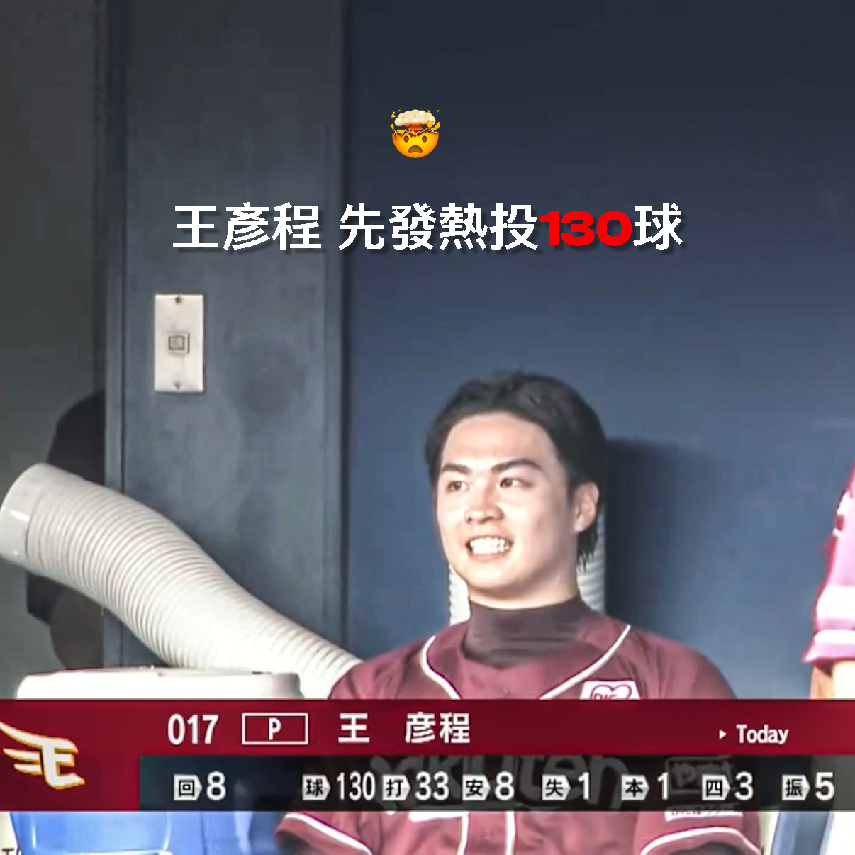 王彥程今天先發8局用130球,被1轟在內8支安打,有5次三振、3次保送,失1分,在三局下被陽春砲丟分。