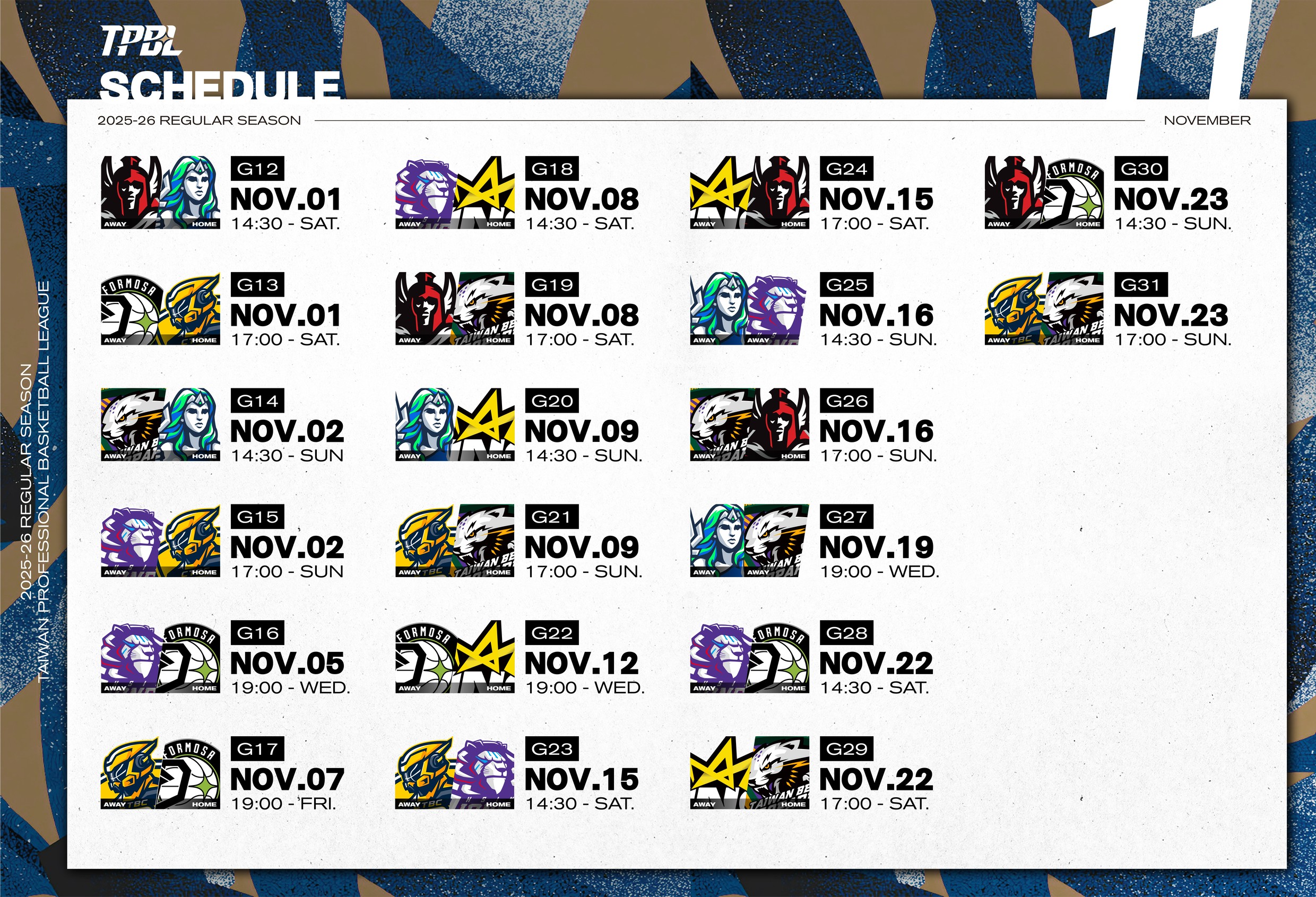 TPBL11月賽程。(TPBL提供)