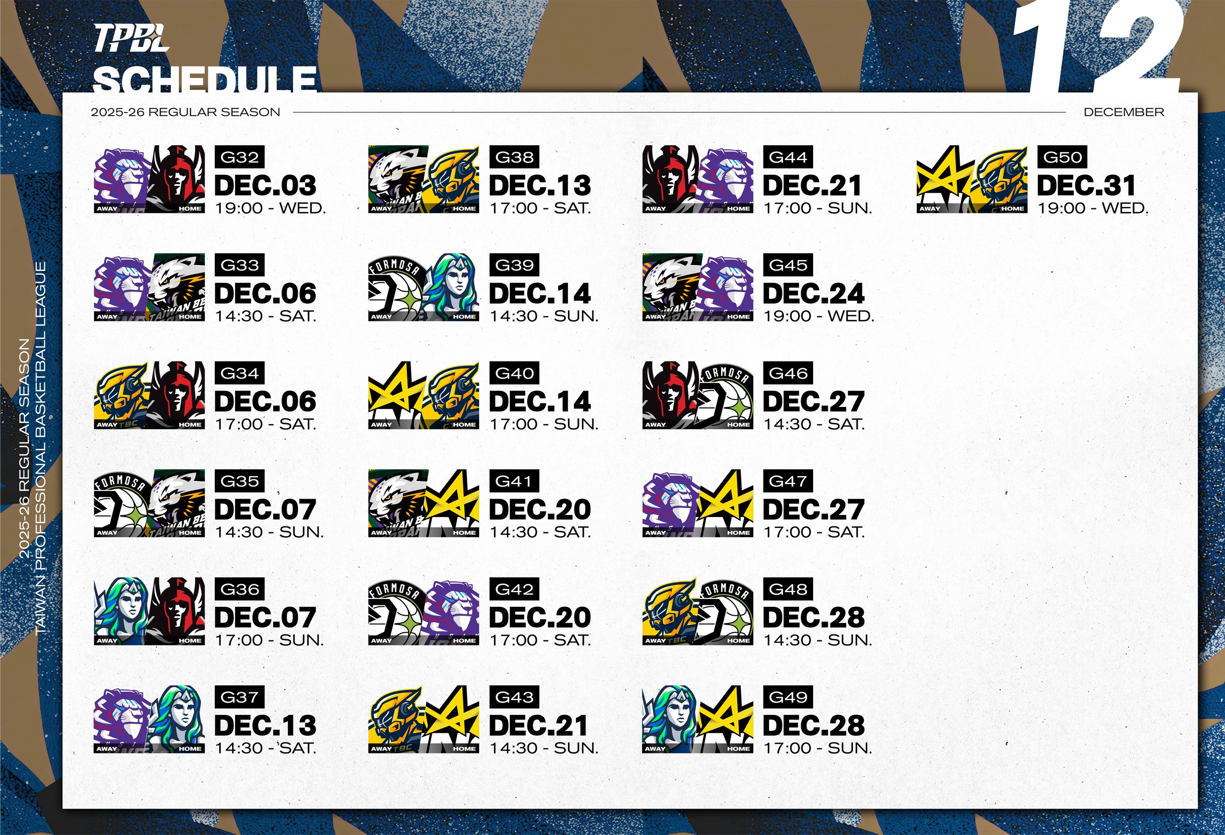 TPBL12月賽程。(TPBL提供)