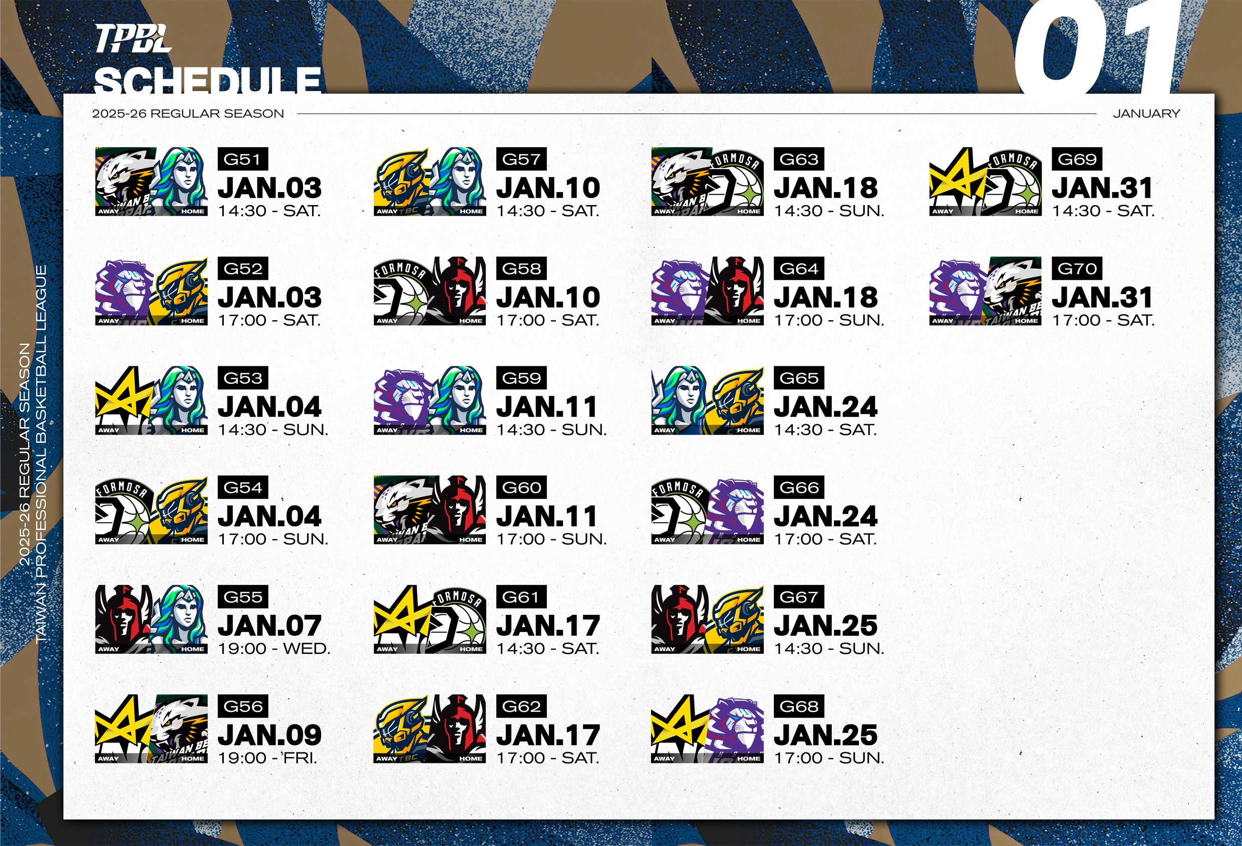 TPBL明年1月賽程。(TPBL提供)