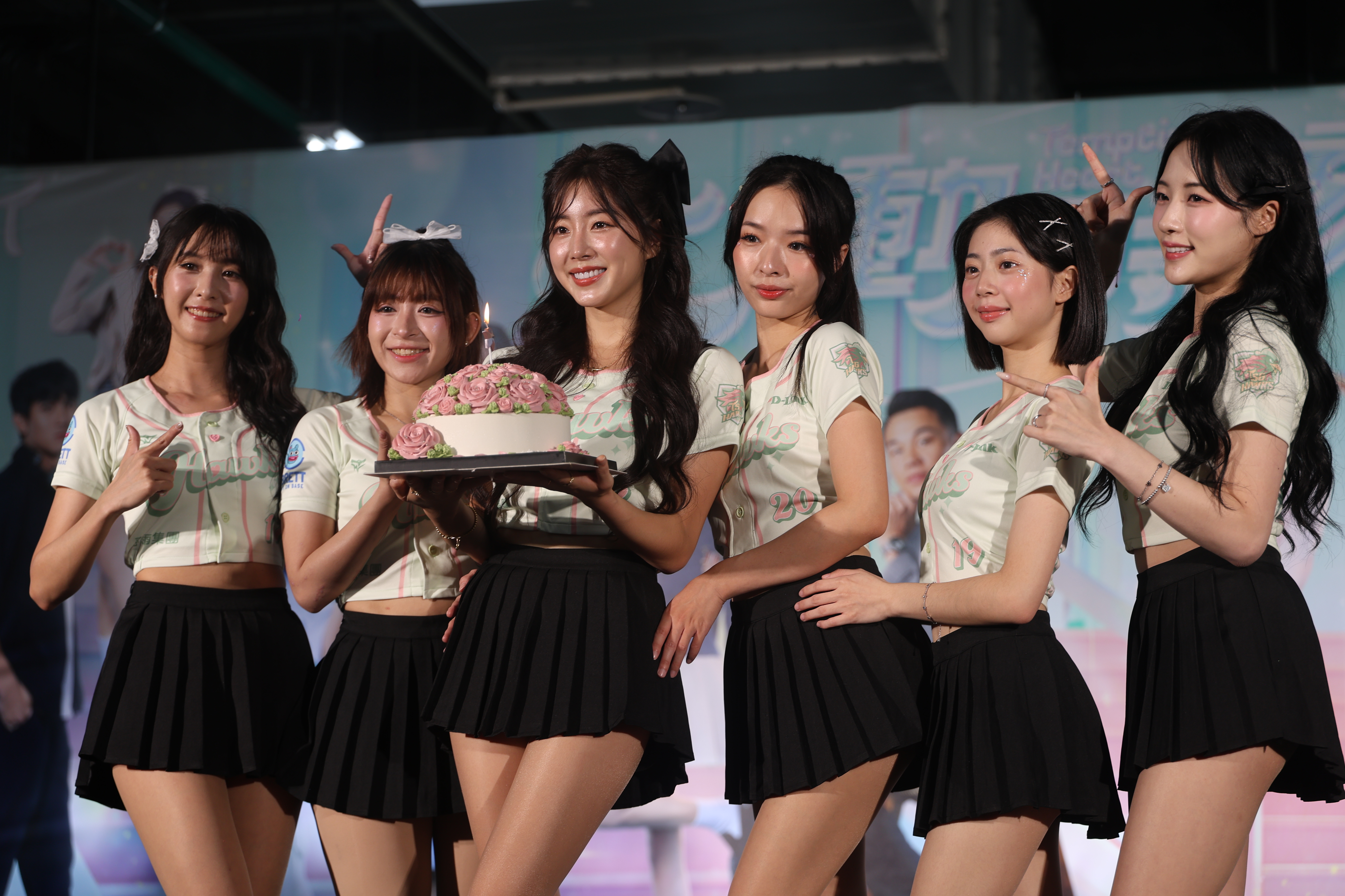 台鋼雄鷹昨在台北大巨蛋第3場主場,邀請韓國人氣女團Apink主唱鄭恩地開球及賽後表演,在唱到經典名曲《MR.CHU》時,啦啦隊Wing Stars同台演出,韓援安芝儇及MINGO穿上婚紗展現歌喉,而安芝儇將在10月3日生日,現場並準備生日蛋糕提前為她慶生,也讓她相當感動。
