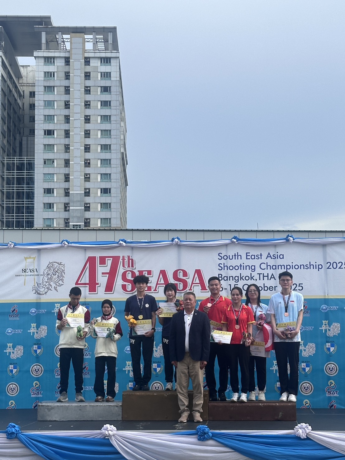 第47屆東南亞射擊錦標賽(47th Southeast Asian Shooting Championships)今天進行10公尺混合空氣手槍項目,國立臺灣師範大學鄭晏晴與台北市立大學謝翔宸默契十足,在決賽逆轉印尼隊,為中華台北隊奪下本屆錦標賽首面金牌。
