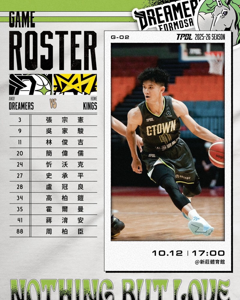 反觀夢想家休賽季迎來重大變革,由簡浩正式接掌兵符,今迎來執教首秀。球隊雖在屏東熱身賽2戰全勝,但本場仍僅登錄2名熟面孔外援高柏鎧與霍爾曼,兩位新外援恩尼斯與湯普金斯尚未登場,主力前鋒馬建豪則因腳踝不適休兵,讓簡浩的執教首戰增添不少變數。